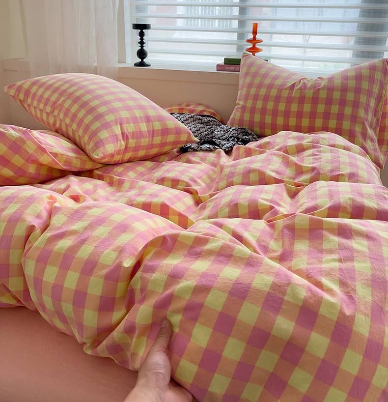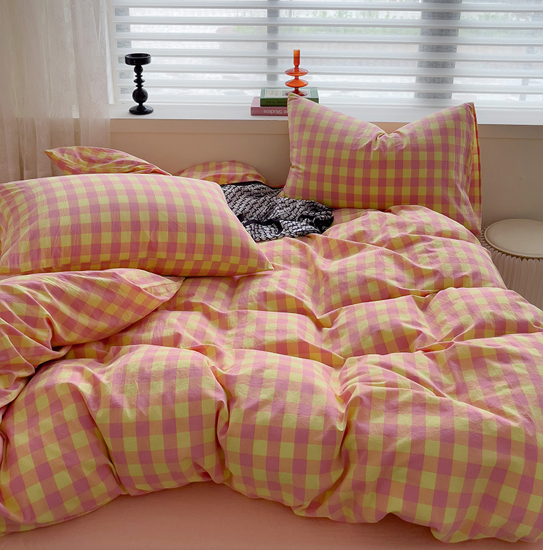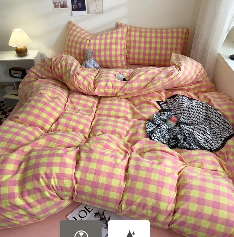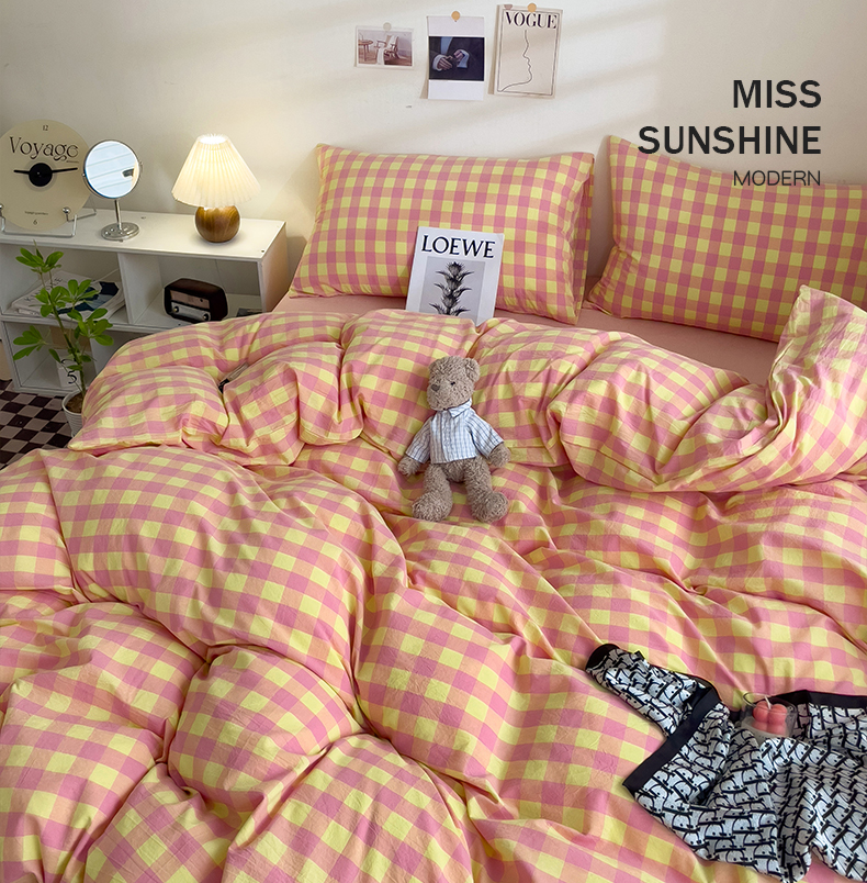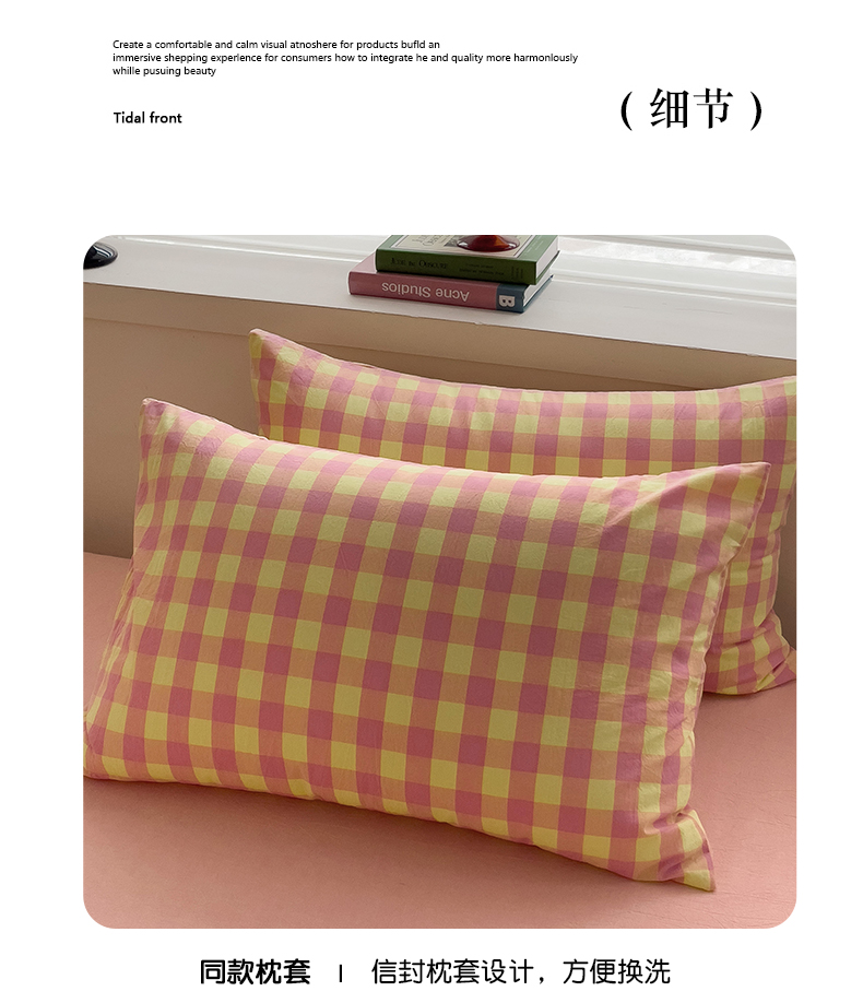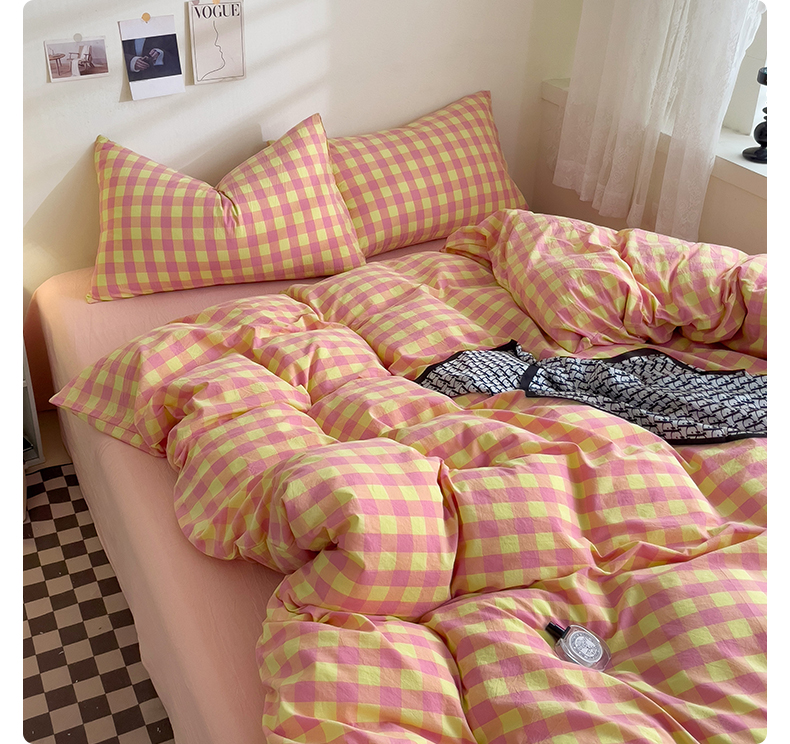 当前位置: 91家纺网 > 商品网购 > 床品套件 > 四件套 > 全棉普通四件套 > 大柏树 2025新款A类色织全棉水洗棉单品系列-四件套 黄粉三分格