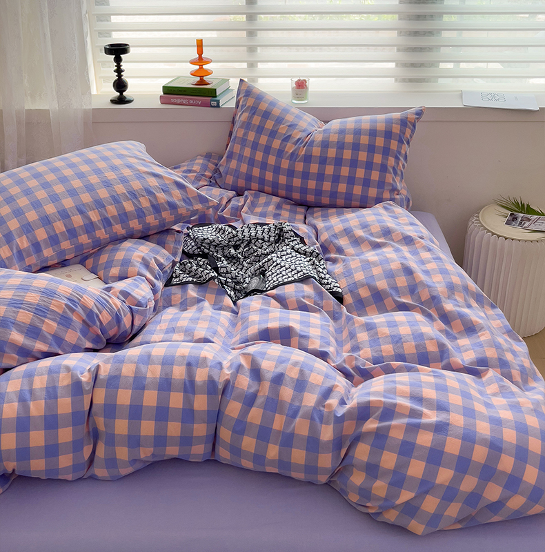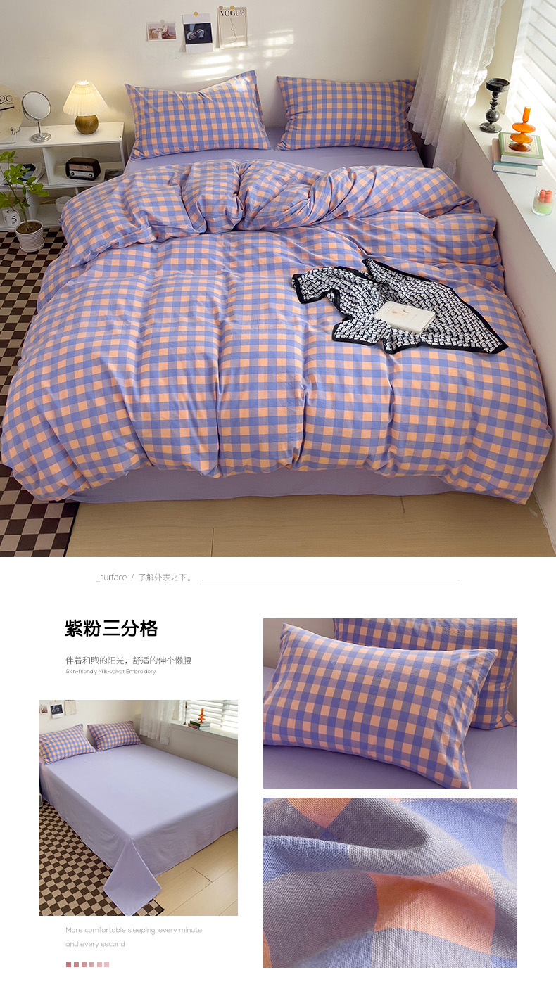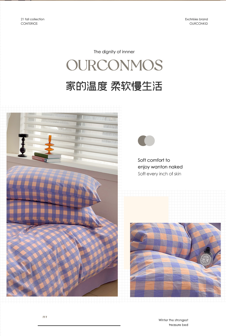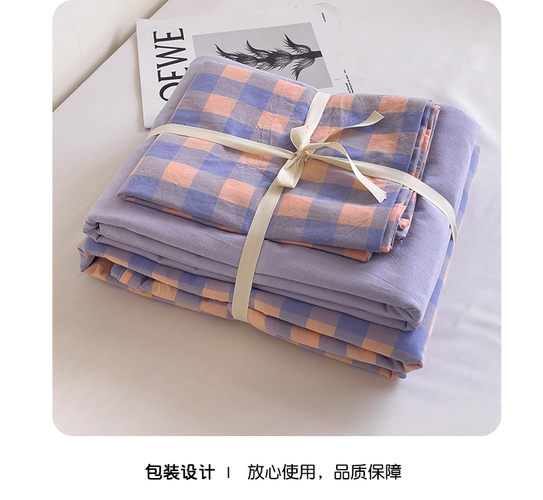 当前位置: 91家纺网 > 商品网购 > 床品套件 > 四件套 > 全棉普通四件套 > 大柏树 2025新款A类色织全棉水洗棉单品系列-四件套 紫粉三分格