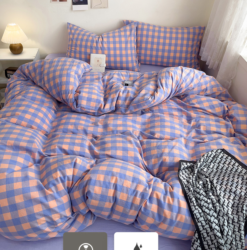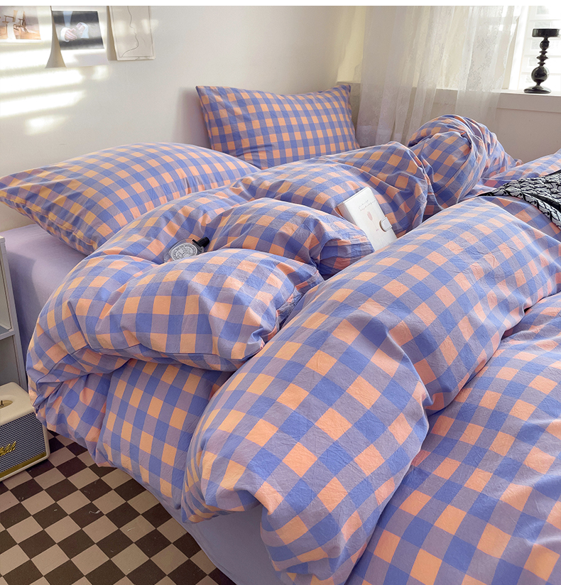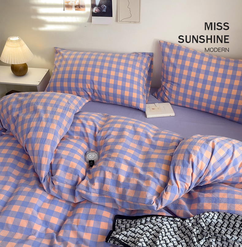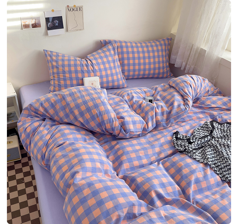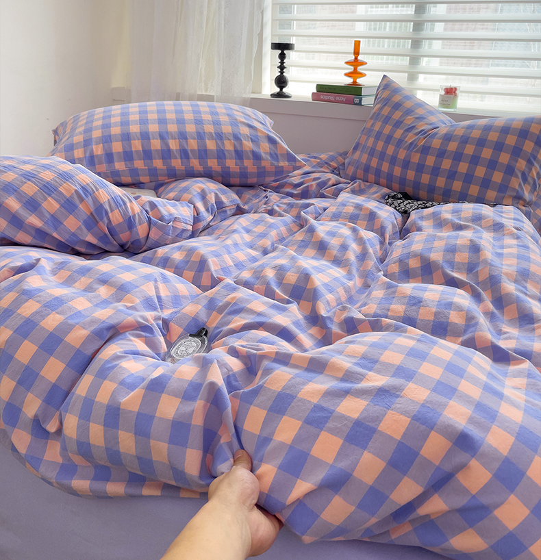 当前位置: 91家纺网 > 商品网购 > 床品套件 > 四件套 > 全棉普通四件套 > 大柏树 2025新款A类色织全棉水洗棉单品系列-四件套 紫粉三分格