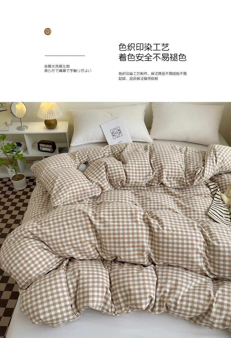 (总)大柏树 2025新款全棉水洗棉套件-床单四件套,艾莎绿小格,春野咖,春野兰,春野玉,绿紫中格,洛伊粉咖小格,莫妮卡,诺卡,日落红,日落灰,云素红,云岫粉咖,云岫绿咖