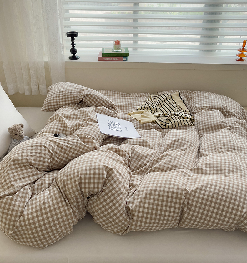 商品名称:大柏树 2025新款A类色织全棉水洗棉单品系列-单被套 米小格