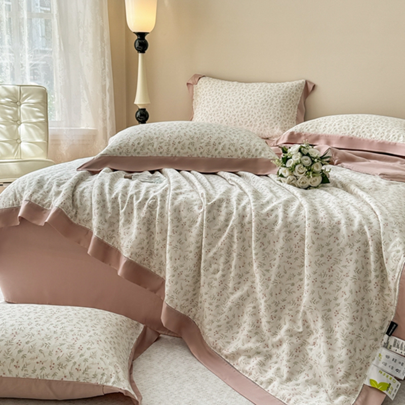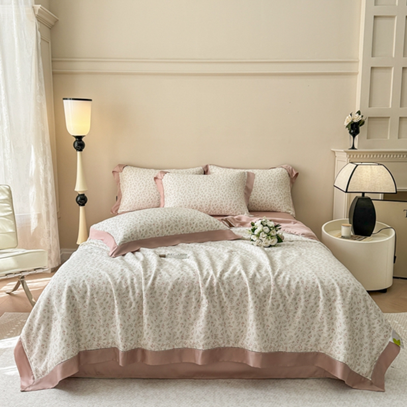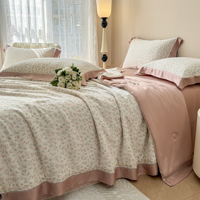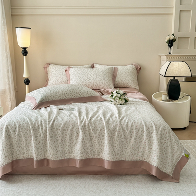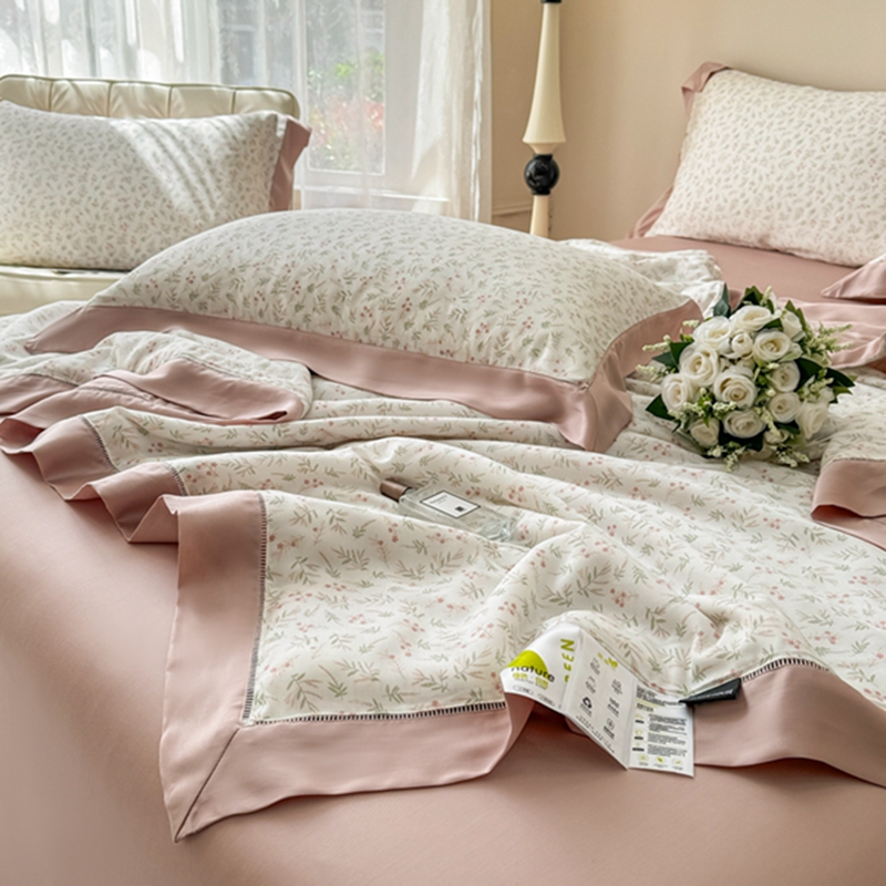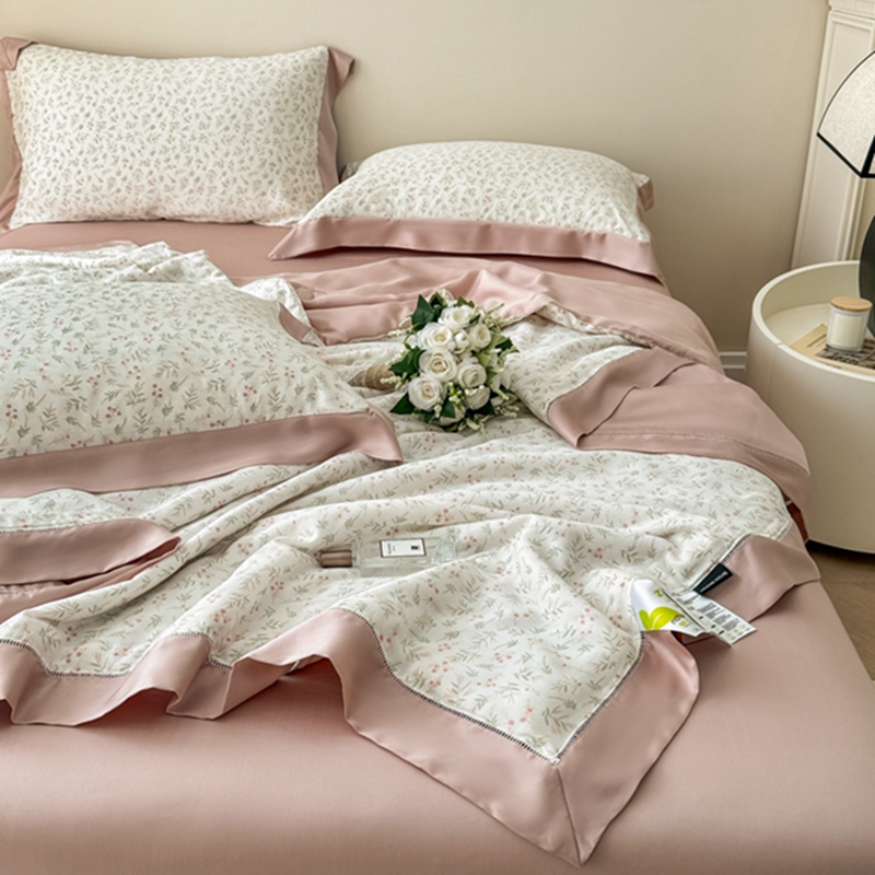 商品名称:若未2025新款法式莱赛尔天丝印花镂空夏被和夏被四件套 叶纷飞
