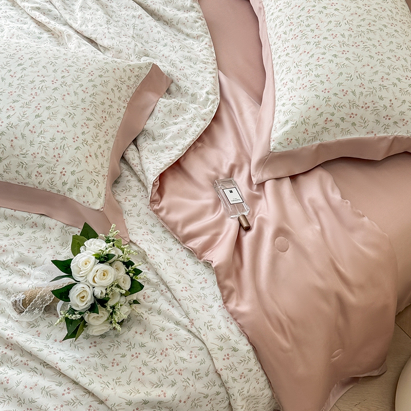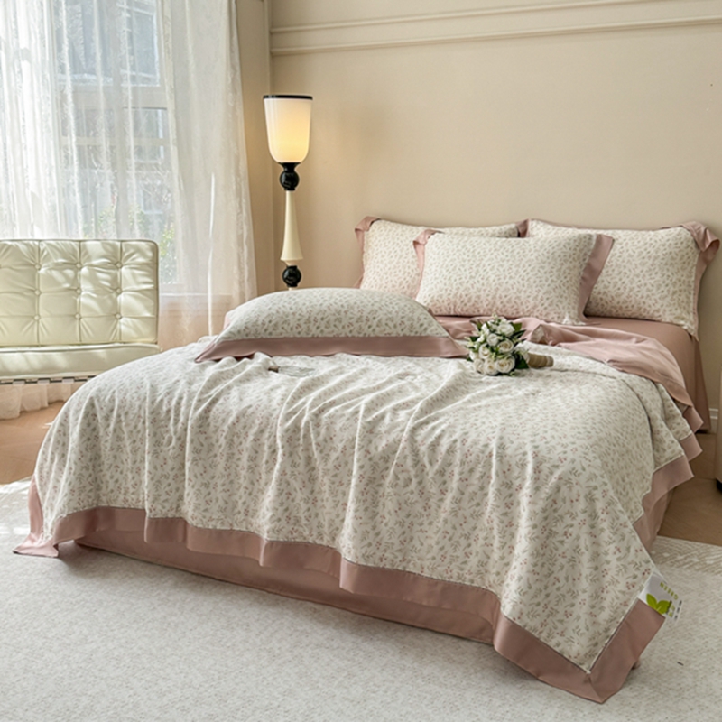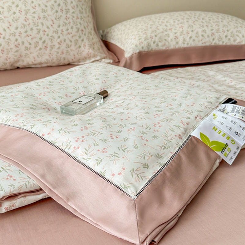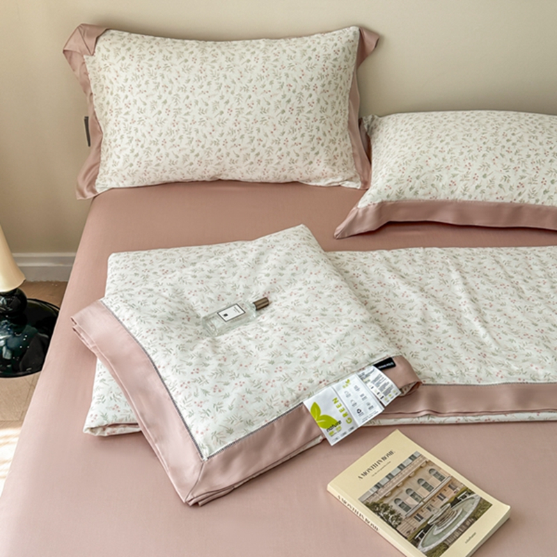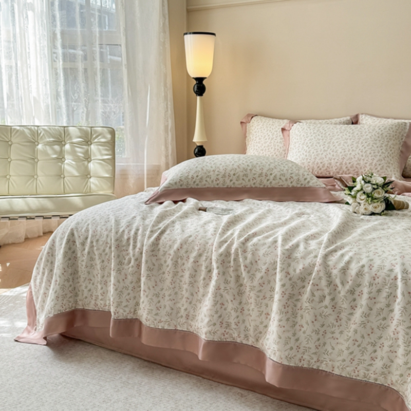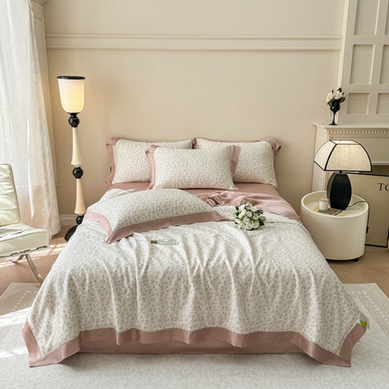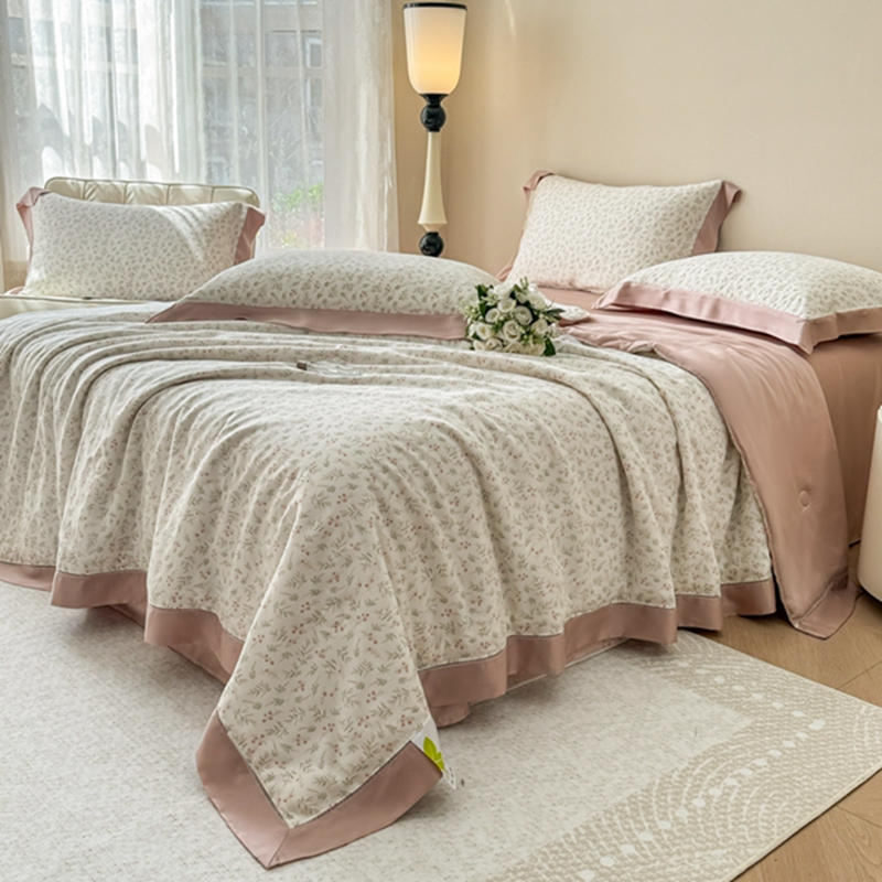 商品名称:若未2025新款法式莱赛尔天丝印花镂空夏被和夏被四件套 叶纷飞