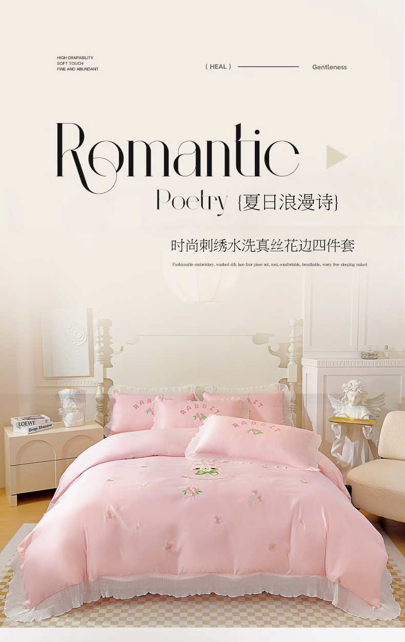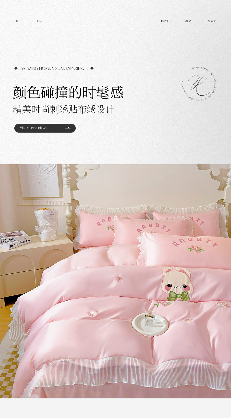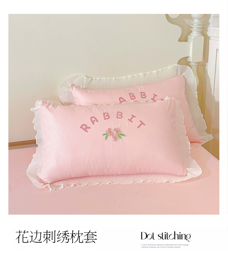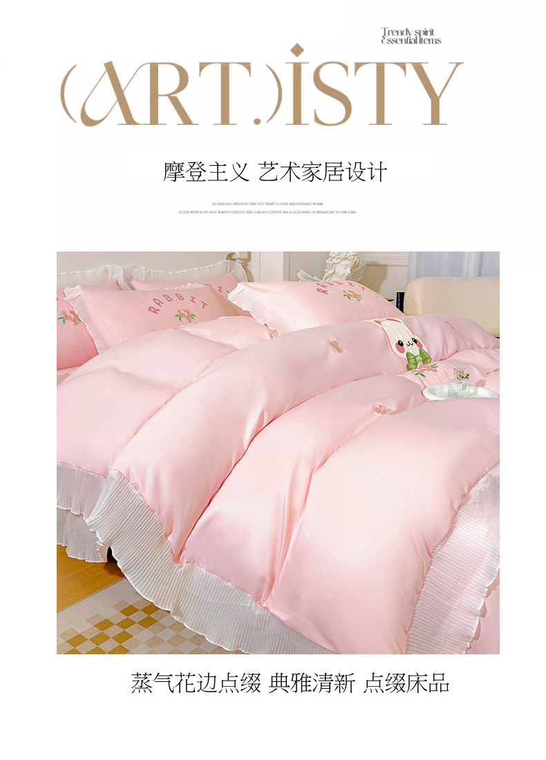当前位置: 91家纺网 > 商品网购 > 床品套件 > 四件套 > 全棉普通四件套 > 菲儿家纺 2024新款水洗真丝花边刺绣四件套-萌萌兔系列 萌萌兔樱花粉