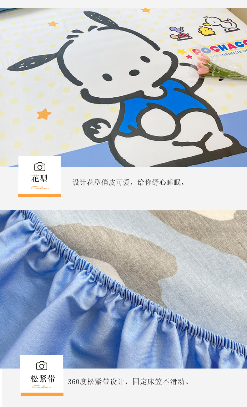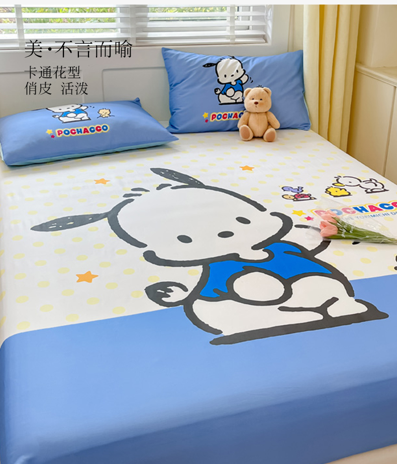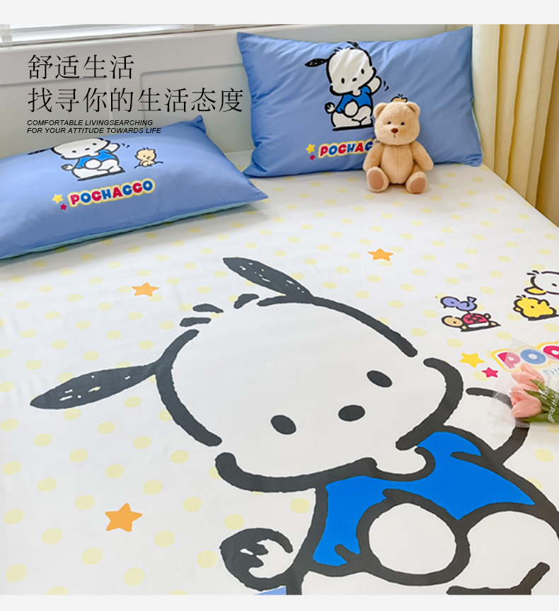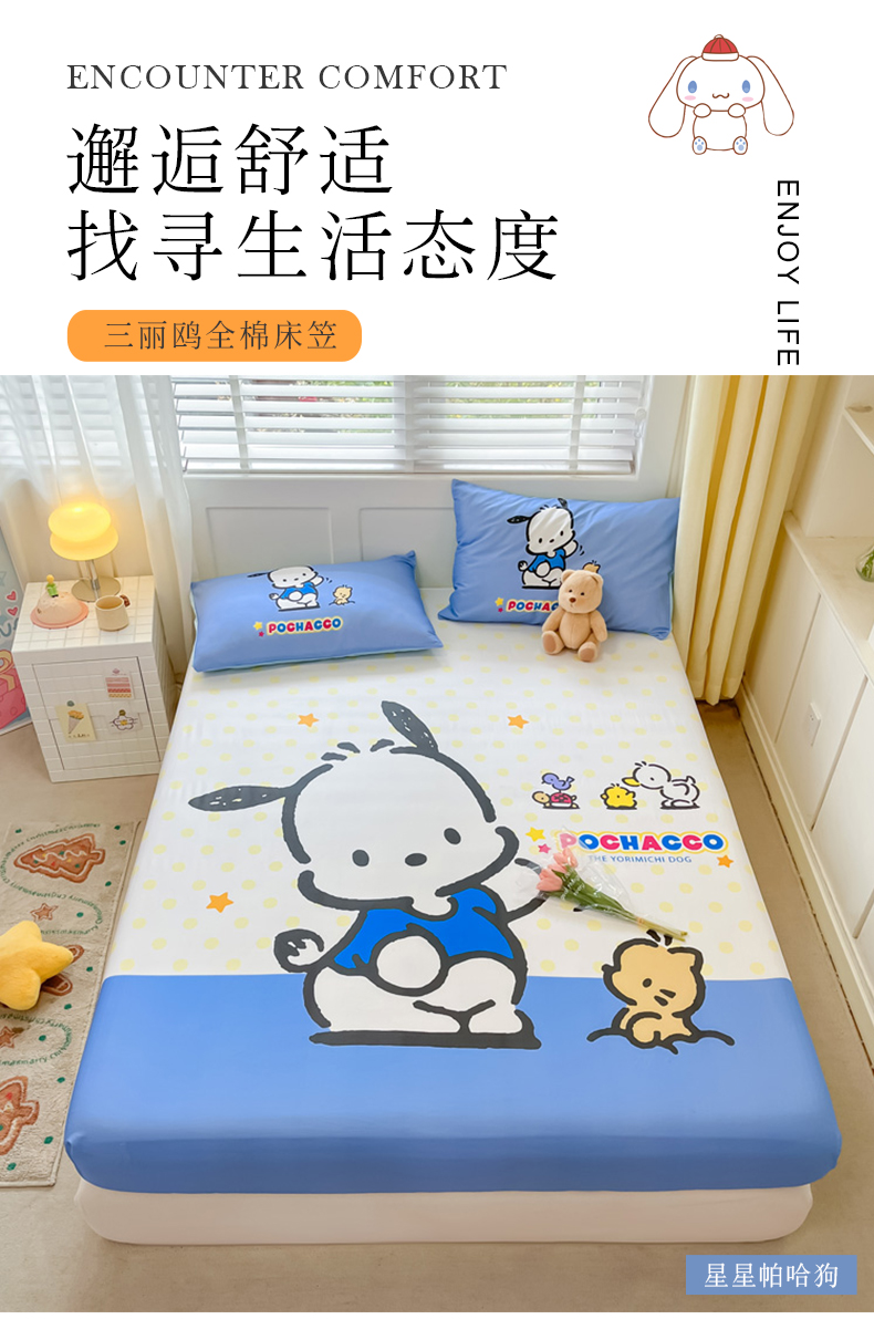 • 91家纺网 家纺一手货源 找家纺 金爱家 2024新款全棉三丽鸥正版大版单品床笠 星星帕哈狗