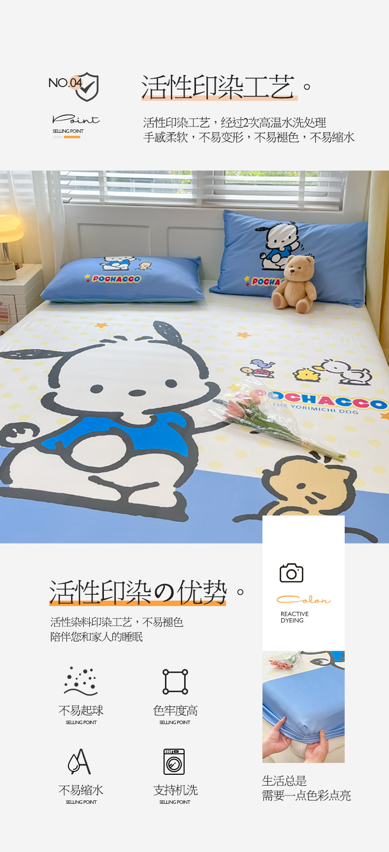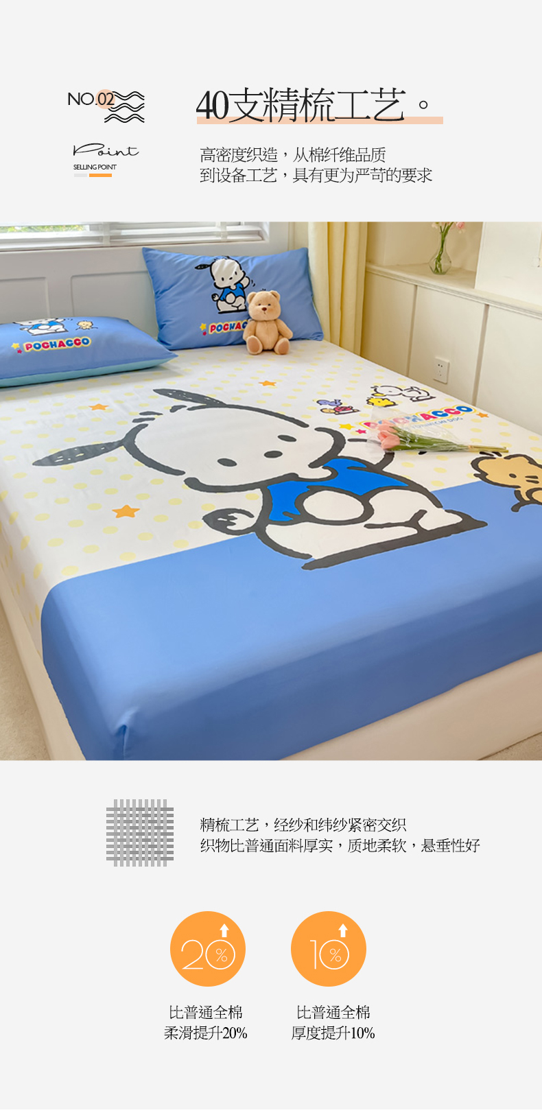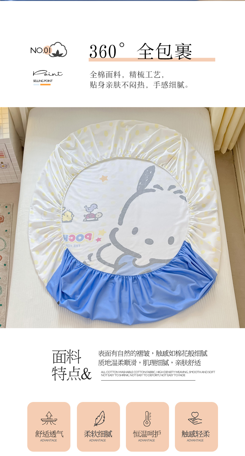 • 91家纺网 家纺一手货源 找家纺 金爱家 2024新款全棉三丽鸥正版大版单品床笠 星星帕哈狗