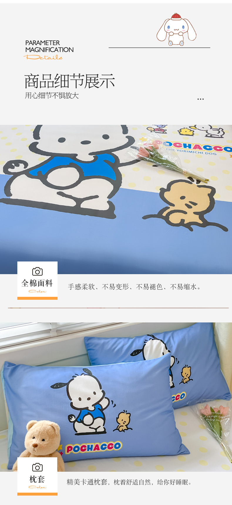 (总)金爱家 2025新款A类三丽鸥正版授权云柔水洗棉兔毛贴布绣刺绣软糯系列四件套,云柔水洗棉-贴布绣粉格KT,云柔水洗棉-贴布绣蓝格布丁狗,云柔水洗棉-贴布绣蓝格KT,云柔水洗棉-贴布绣美乐蒂,云柔水洗棉-贴布绣萌萌布丁狗,云柔水洗棉-贴布绣你好大耳狗,云柔水洗棉-贴布绣紫格库洛米