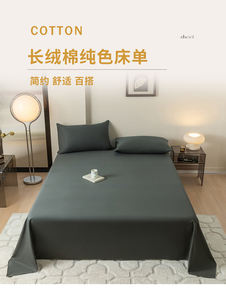 暖季 2025新款40支全棉纯色床单 高级灰