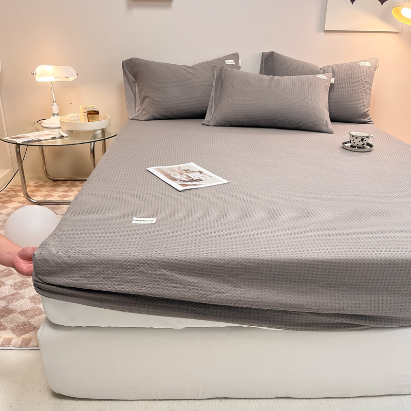 • 91家纺网 家纺一手货源 找家纺 2024沐辰家居-华夫格系列床笠单品 珍珠灰