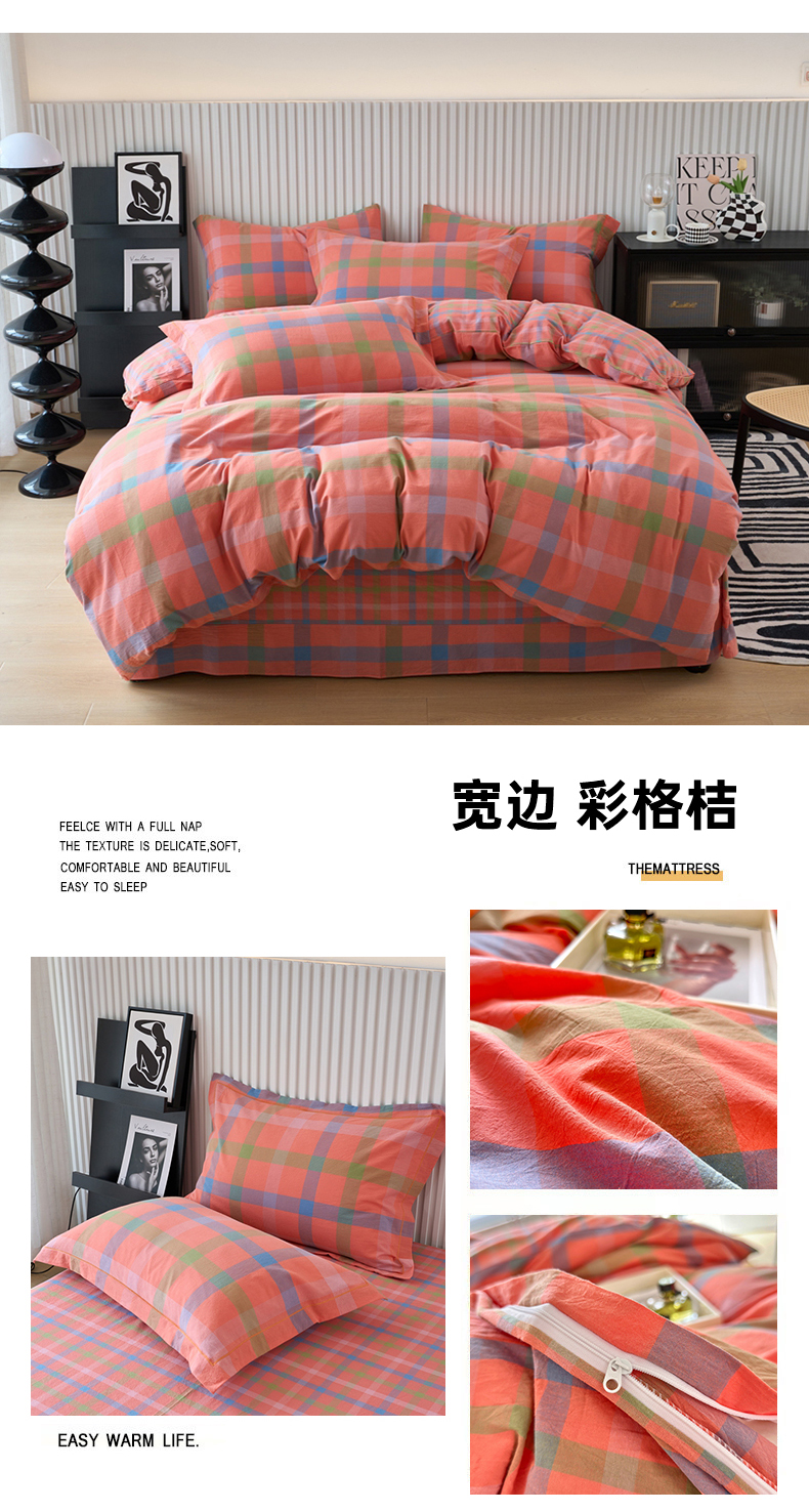 当前位置: 91家纺网 > 商品网购 > 床品套件 > 四件套 > 水洗棉四件套 > 三沁家居 2024新款格子色织全棉水洗棉四件套 宽边 彩格桔
