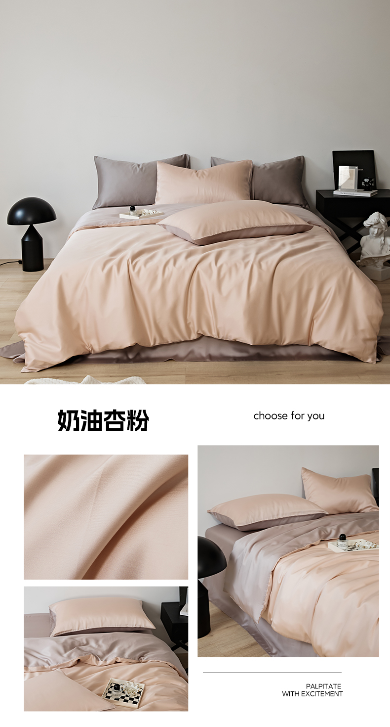 EH 2024新款初夏LF60支天丝双拼色四件套系列 奶油杏粉