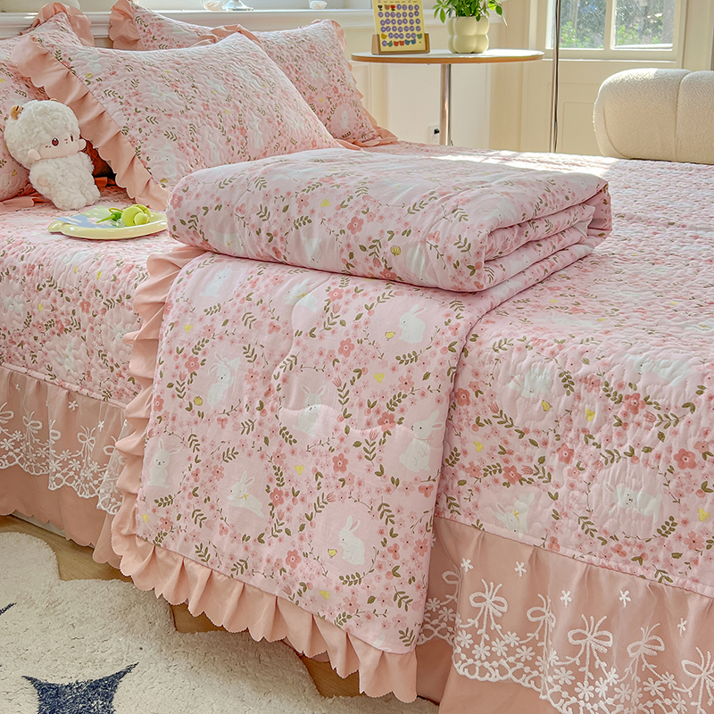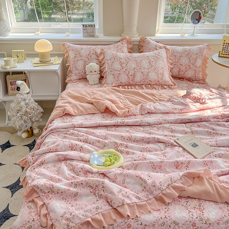 (总)雅眠居 2024新款水洗双层纱夏被四件套夏凉被空调被床盖四件套,小桃兔兔,春天里,玫瑰花语,紫苏