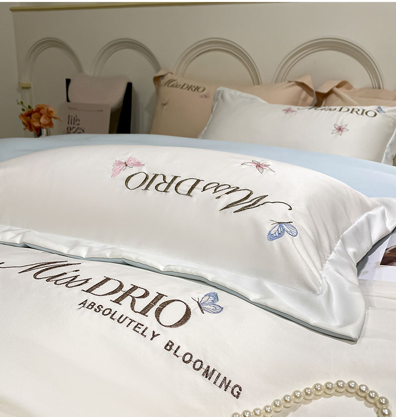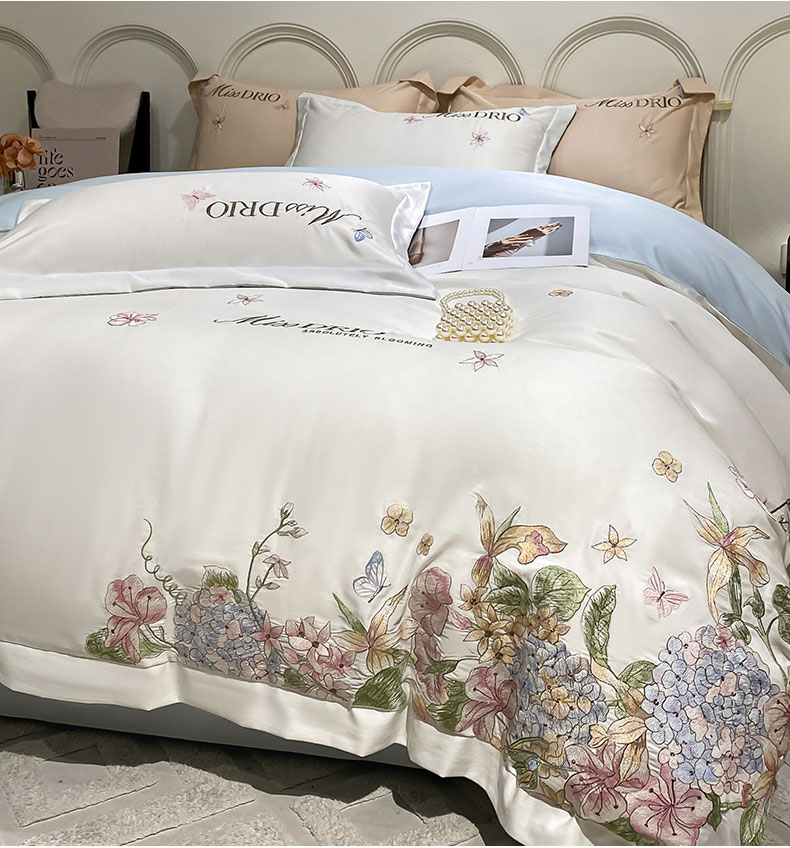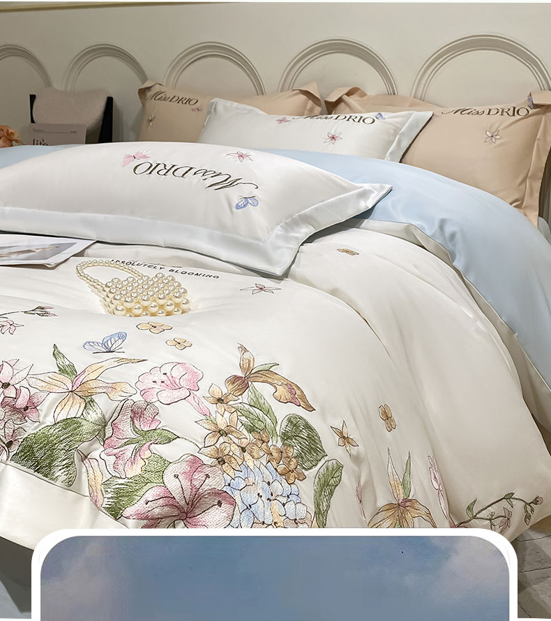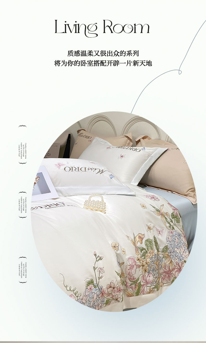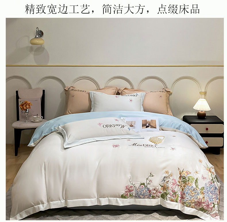 新印象 2024新款60s天丝宽边绣花工艺四件套-繁花 繁花-白兰