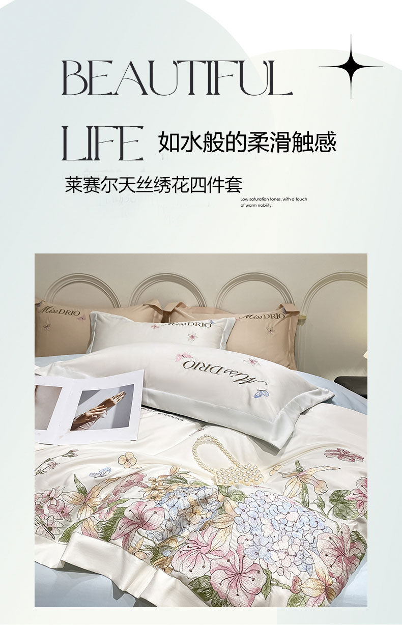 (总)新印象 2024新款天丝绣花宽边工艺四件套-茉然,茉然-粉,茉然-天空蓝,茉然-象牙白