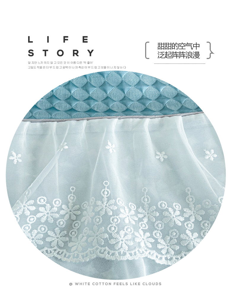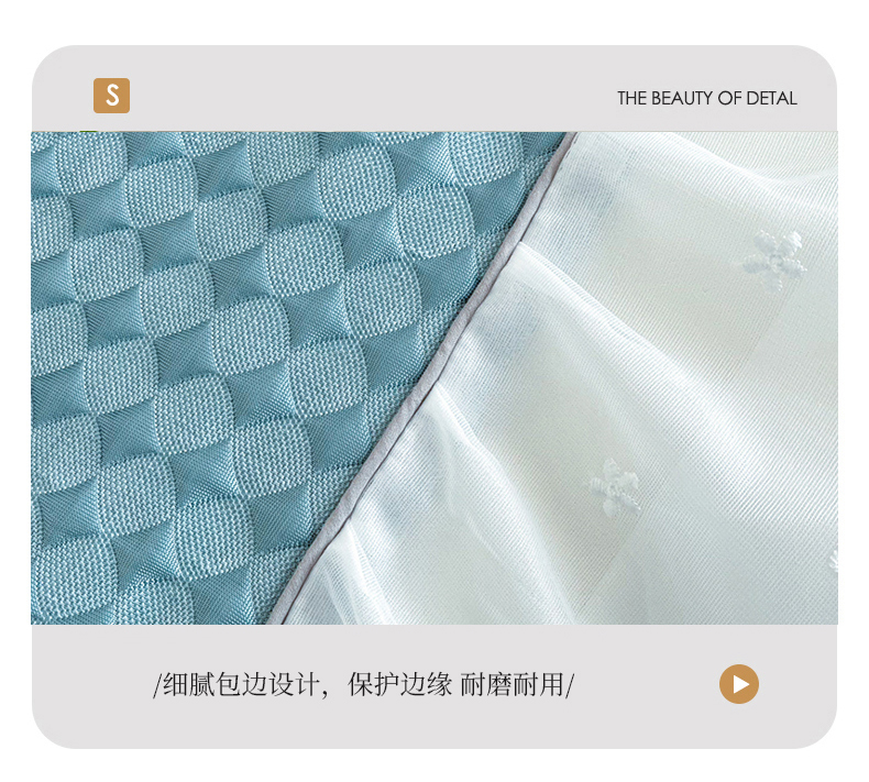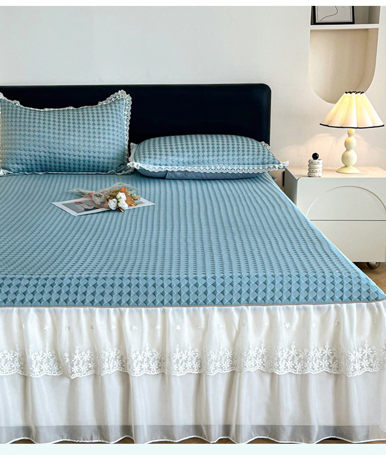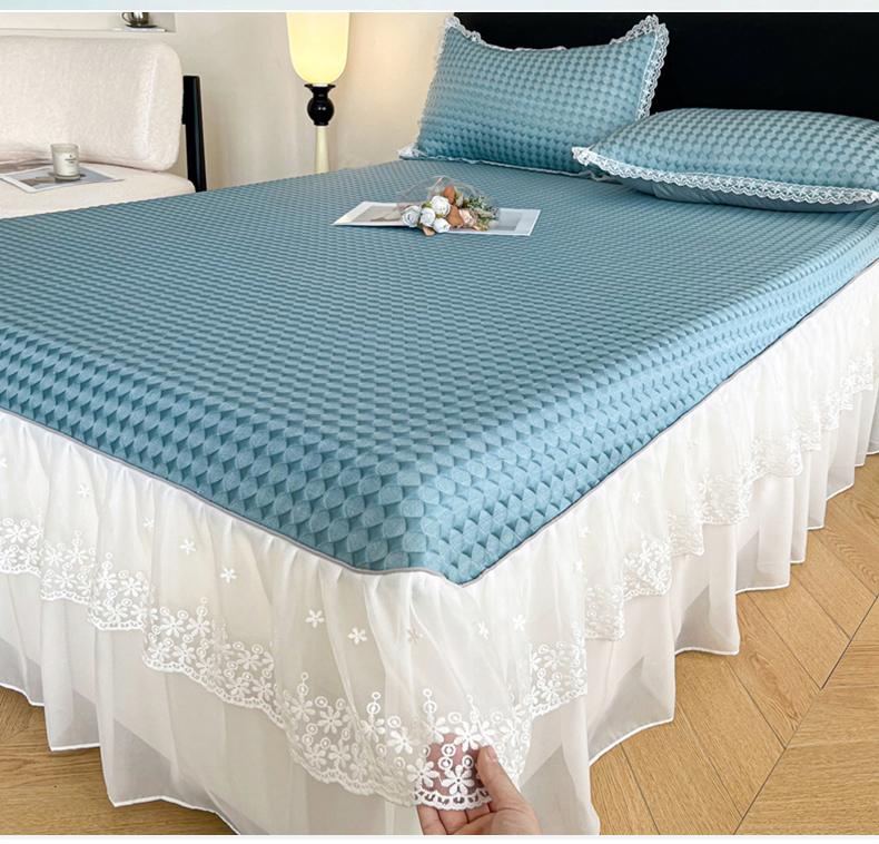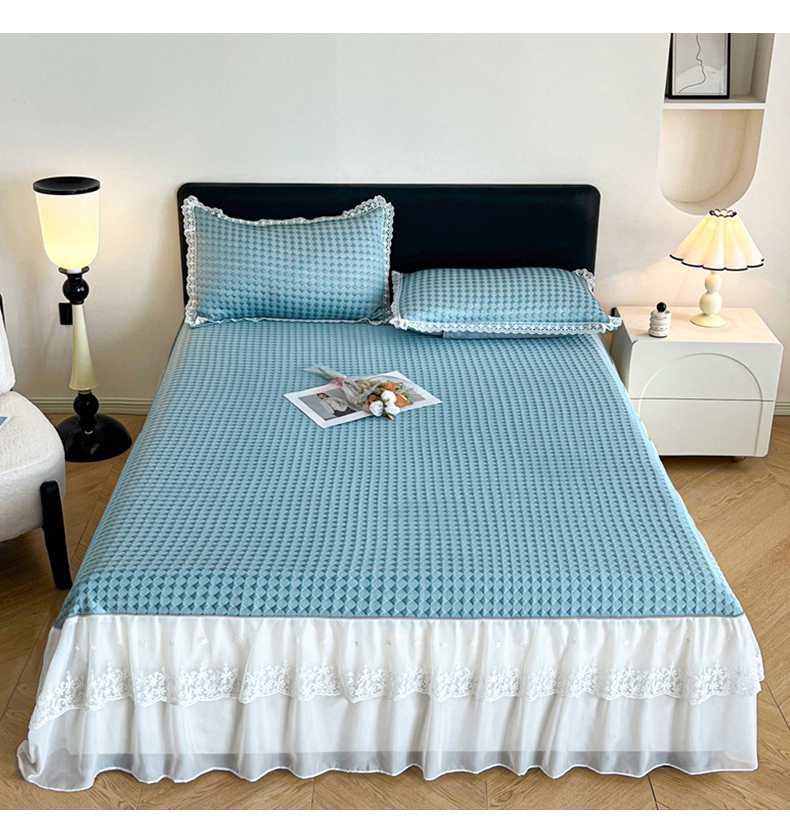 商品名称:吉祥家纺 2024新款华夫格冰豆豆凉感床裙套件 冰蓝格