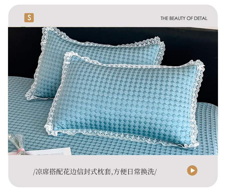 (总)吉祥家纺 2025新款提花四叶草凉席床笠款,四叶草粉,四叶草黄,四叶草灰,四叶草蓝,四叶草绿