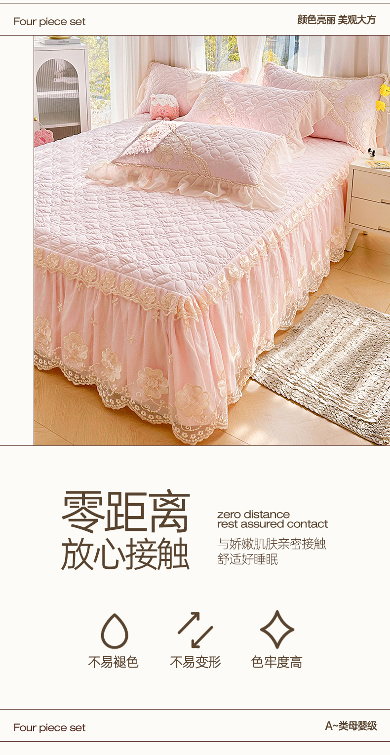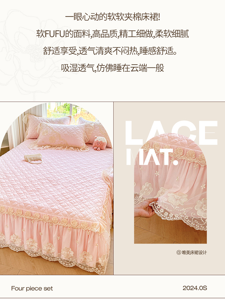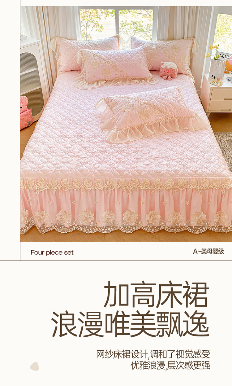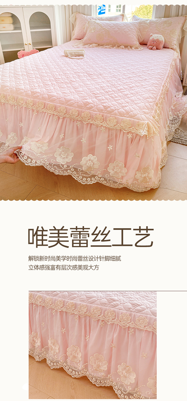 商品名称:罗艺轩 2024新款公主风水洗棉夹棉单床裙-浪漫满屋床 浪漫满屋-少女粉