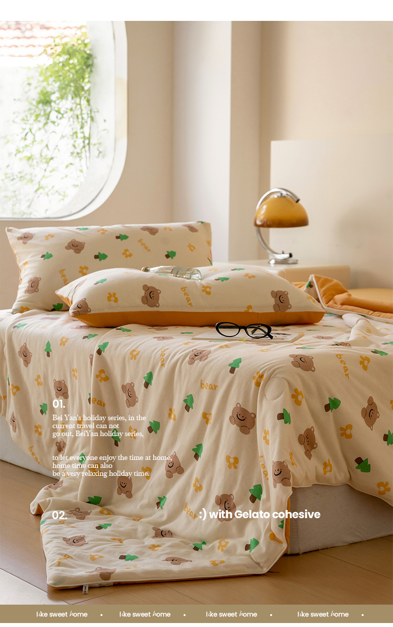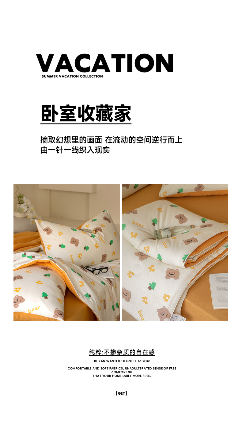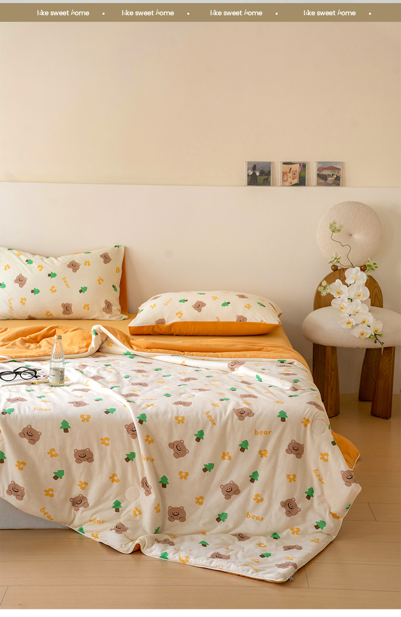 • 91家纺网 家纺一手货源 找家纺 华超针织 2024新款全棉针织印花夏被 夏被森林熊