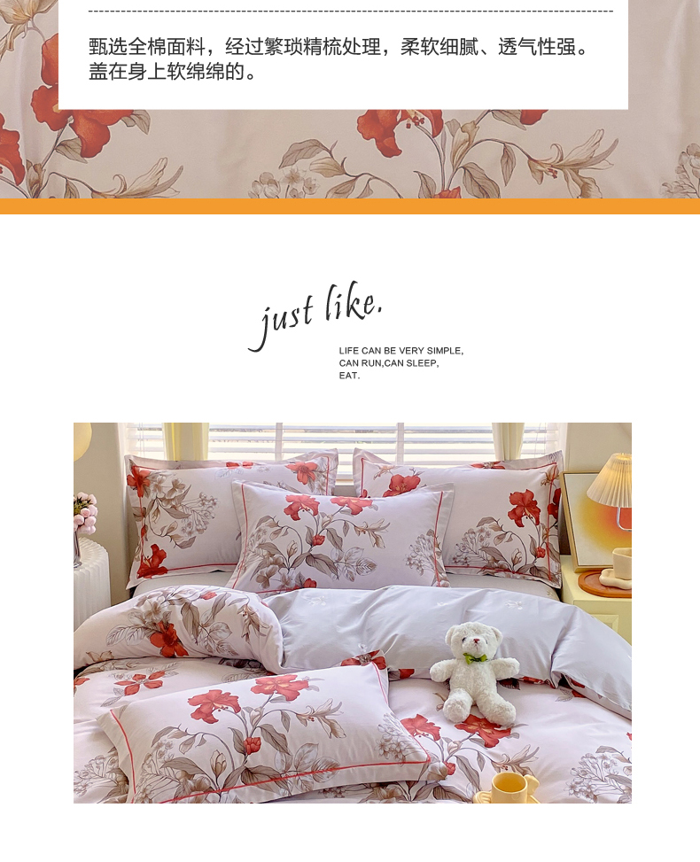 当前位置: 91家纺网 > 商品网购 > 床品套件 > 四件套 > 全棉普通四件套 > 星期三家纺 2024年5月新款铂金全棉13372四件套(加老板微信有会员价) 点彩人生