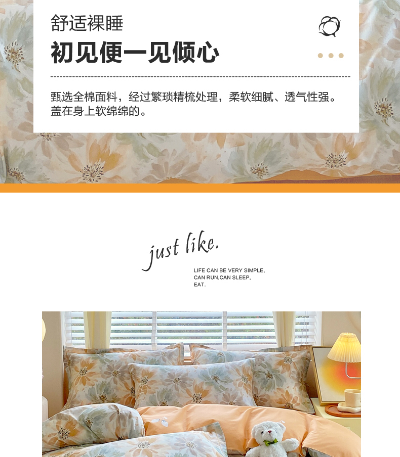 当前位置: 91家纺网 > 商品网购 > 床品套件 > 四件套 > 全棉普通四件套 > 星期三家纺 2024年5月新款铂金全棉13372四件套(加老板微信有会员价) 遇见