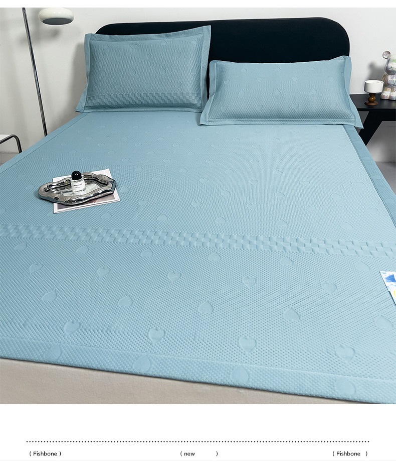 凉百百 2024新款冰豆豆爱心款凉席冰丝凉席可折叠设计量大价优 爱心款-蓝
