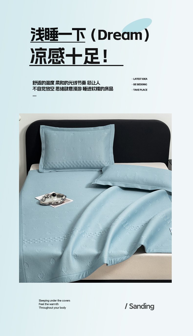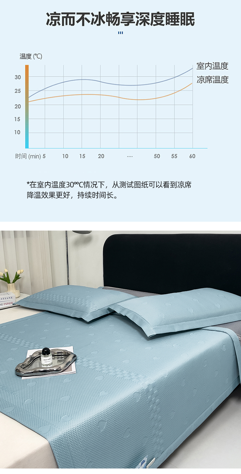 (总)凉百百 2024新款凉豆豆乳胶凉席冰丝席直播电商优选,蓝,粉,灰,绿