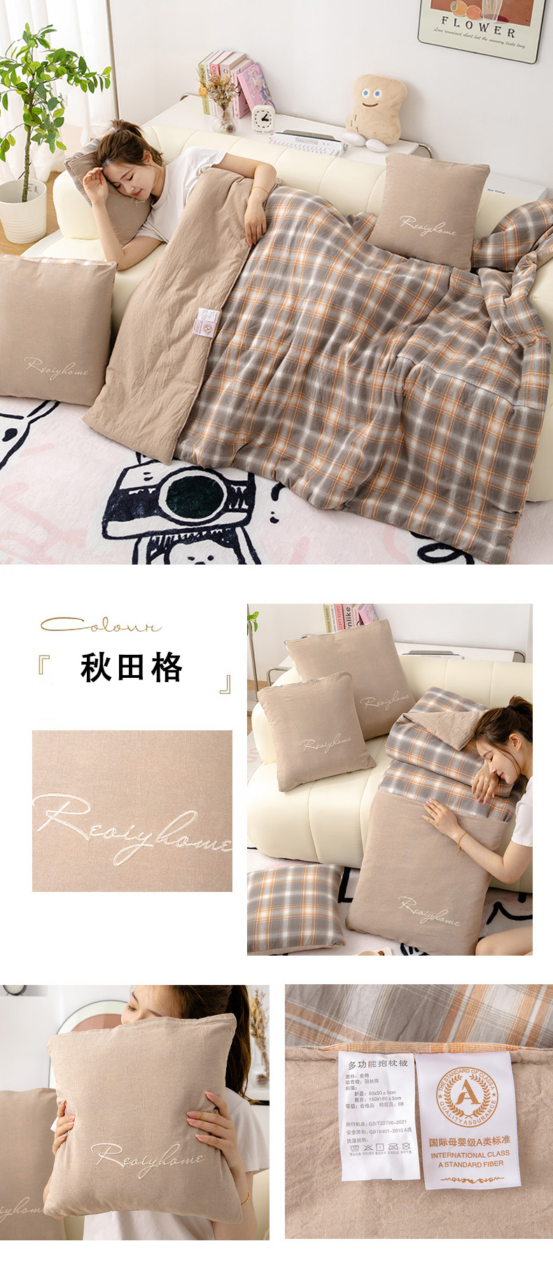 商品名称:吉利家居 2024新款A类全棉多功能口袋抱枕被 秋田格
