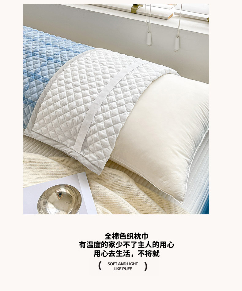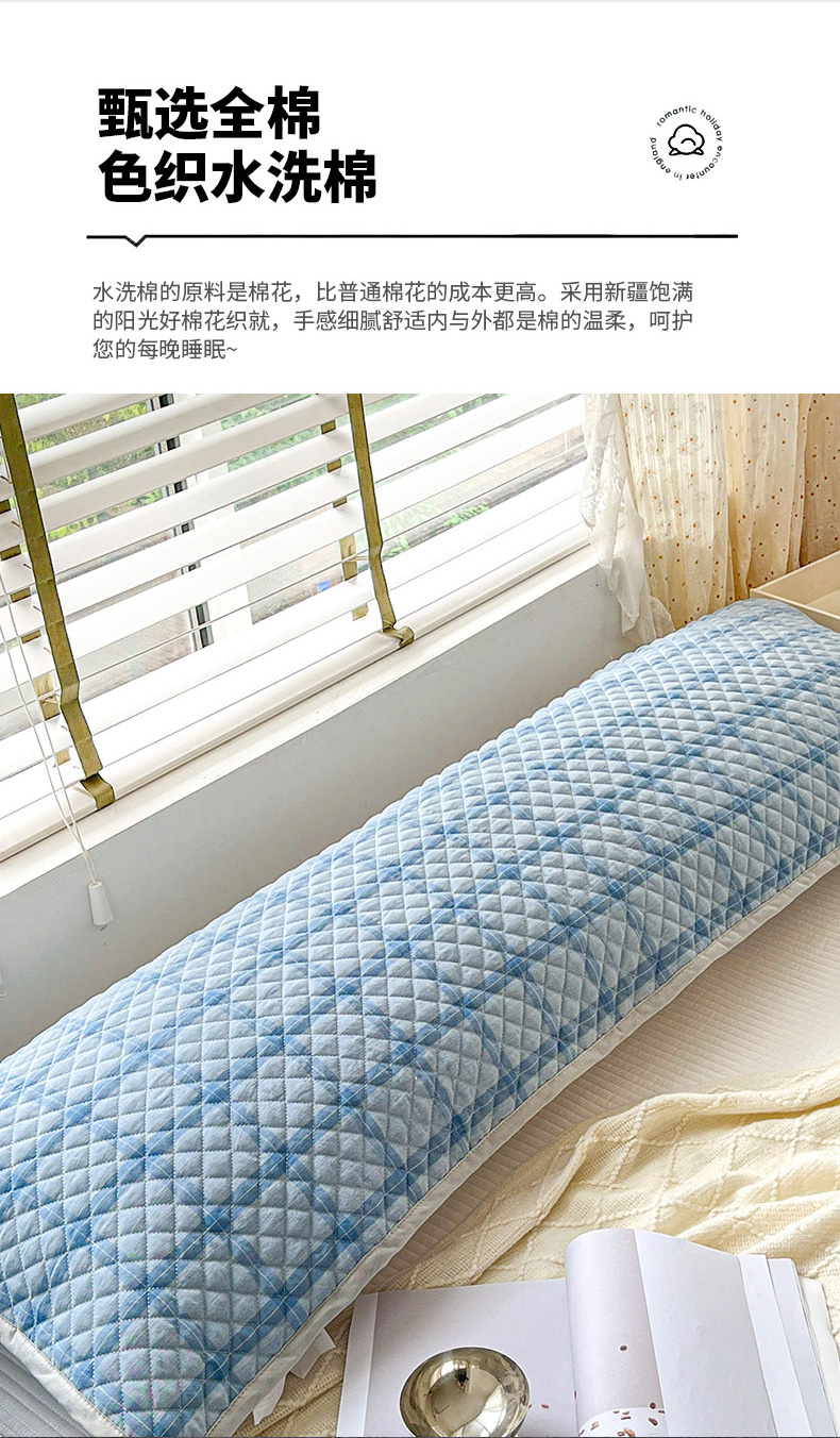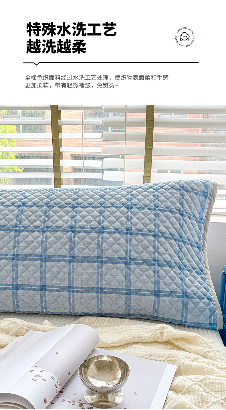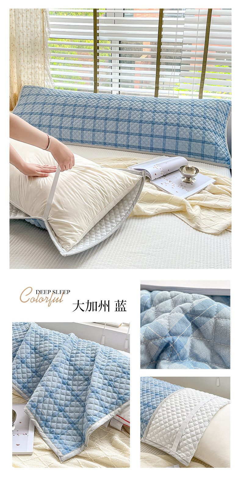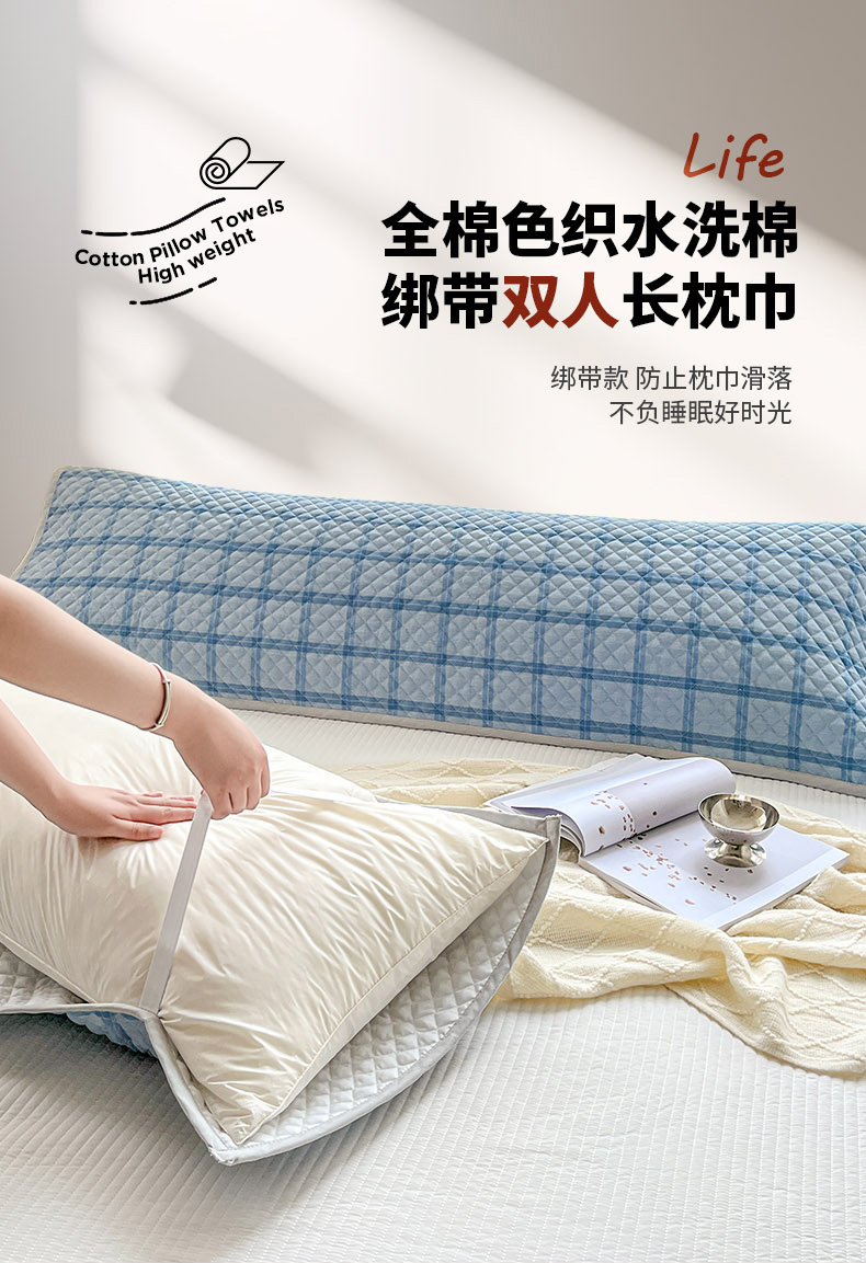 爱港家纺 2024新款全棉水洗色织绗缝双人长枕巾 情侣款枕套 防滑枕巾 大加州-蓝