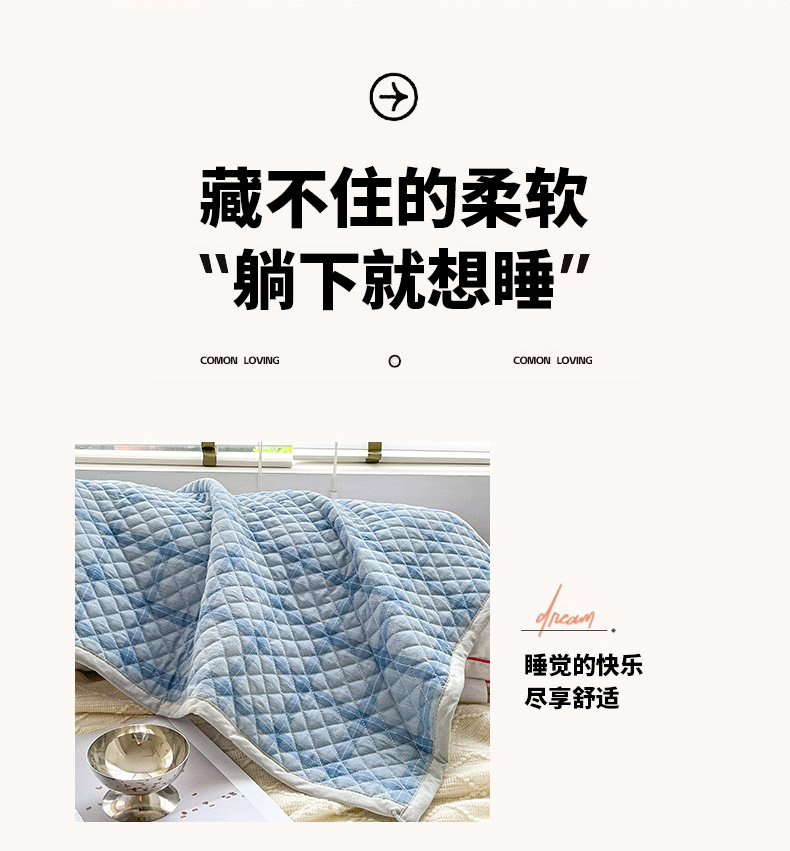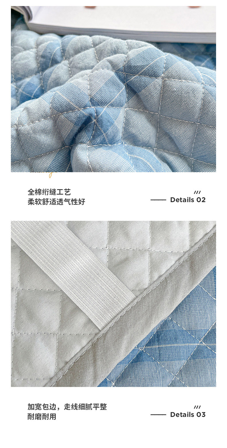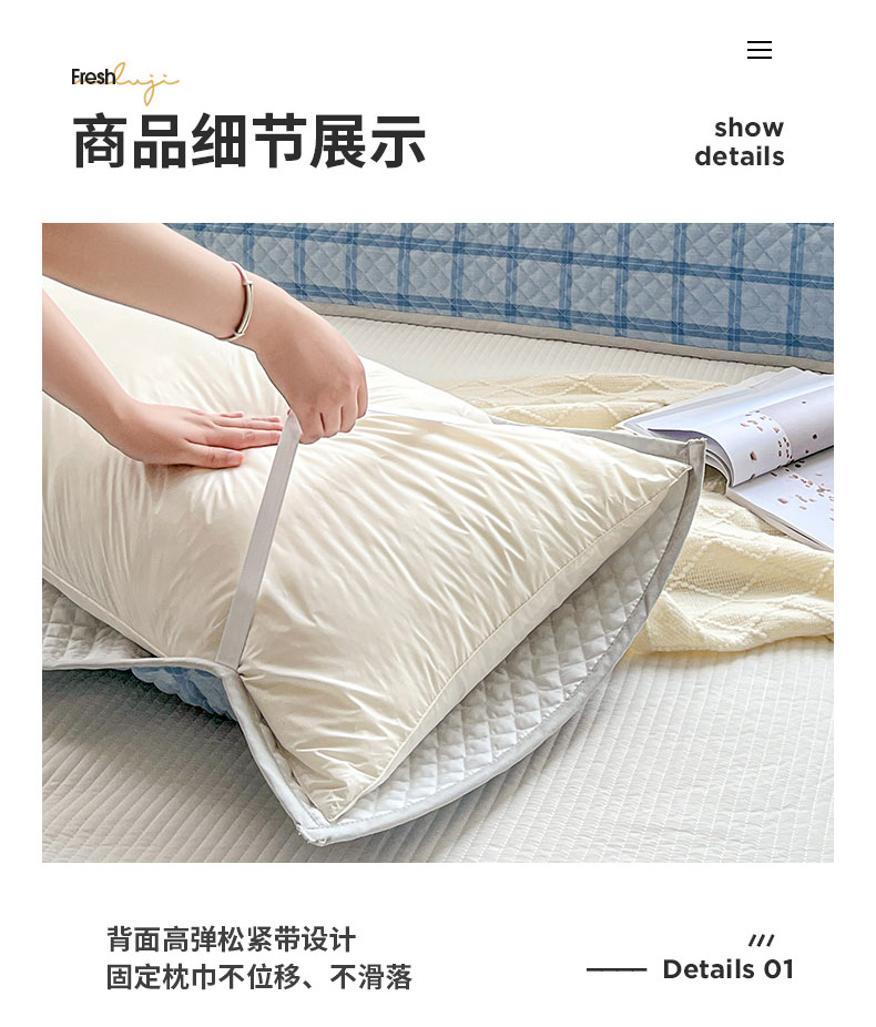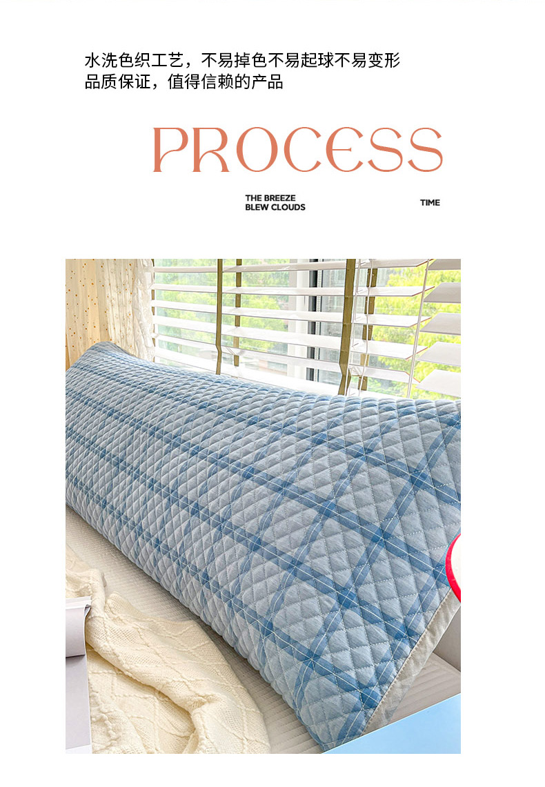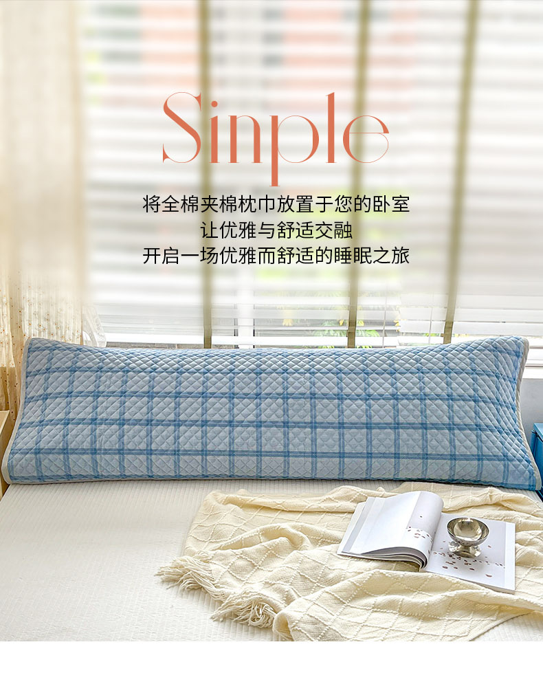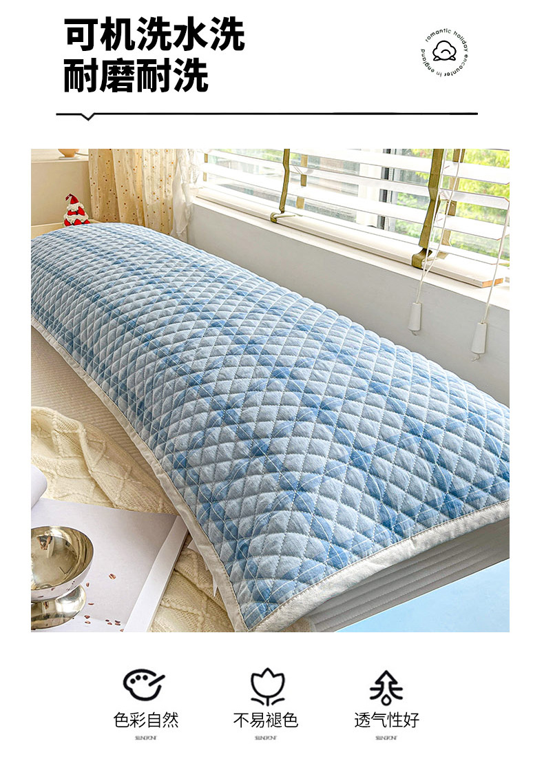 爱港家纺 2024新款全棉水洗色织绗缝双人长枕巾 情侣款枕套 防滑枕巾 大加州-蓝