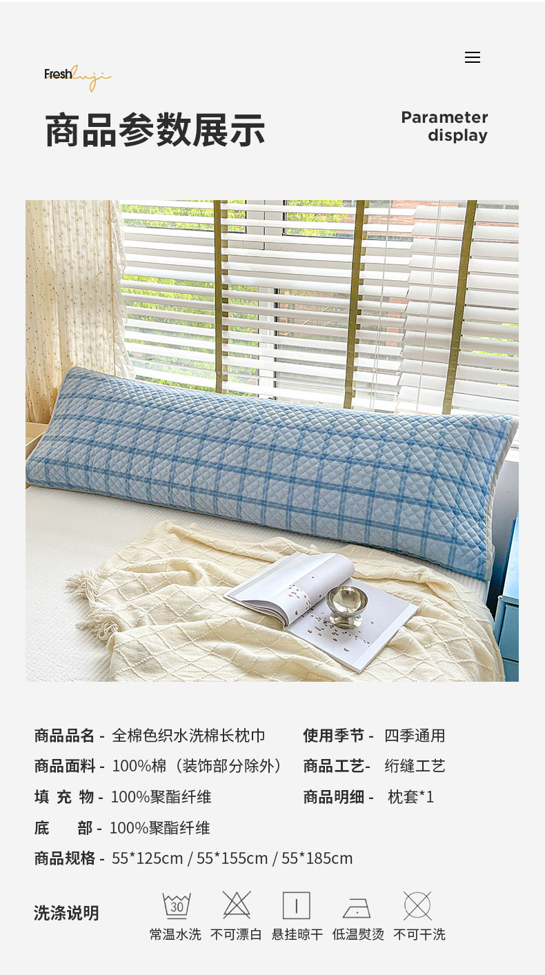 商品名称:爱港家纺 2024新款全棉水洗色织绗缝双人长枕巾 情侣款枕套 防滑枕巾 大加州-蓝