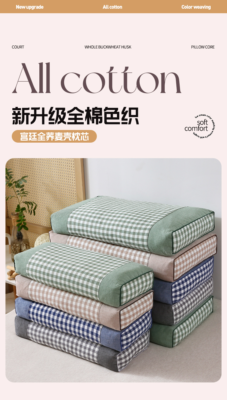 当前位置: 91家纺网 > 商品网购 > 枕头/枕芯/保健枕/颈椎枕 > 普通枕芯 > 梦叶草 2024新款全棉色织水洗棉宫廷全荞麦枕头无印良品风格荞麦壳枕芯 全棉色织宫廷-荞麦枕蓝色40*60*9cm /只