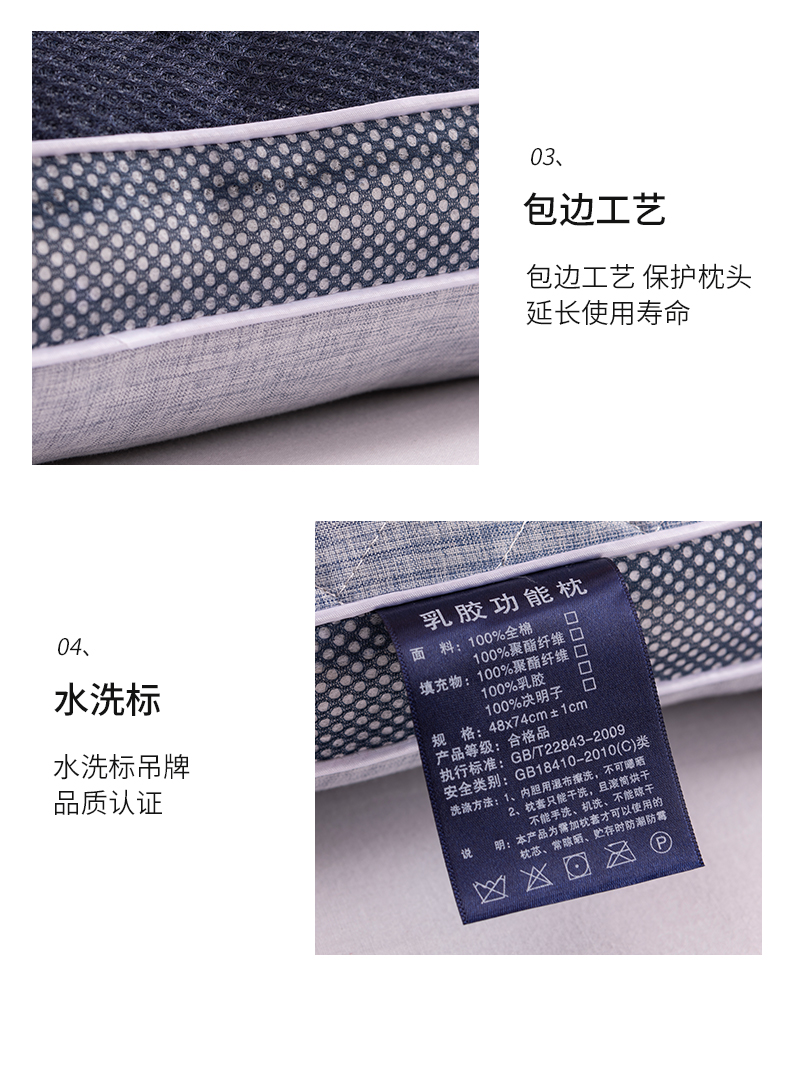 当前位置: 91家纺网 > 商品网购 > 枕头/枕芯/保健枕/颈椎枕 > 普通枕芯 > 梦叶草 2024阳离子含有乳胶片芯护颈枕头 阳离子含有乳胶片-蓝色48*74cm/只
