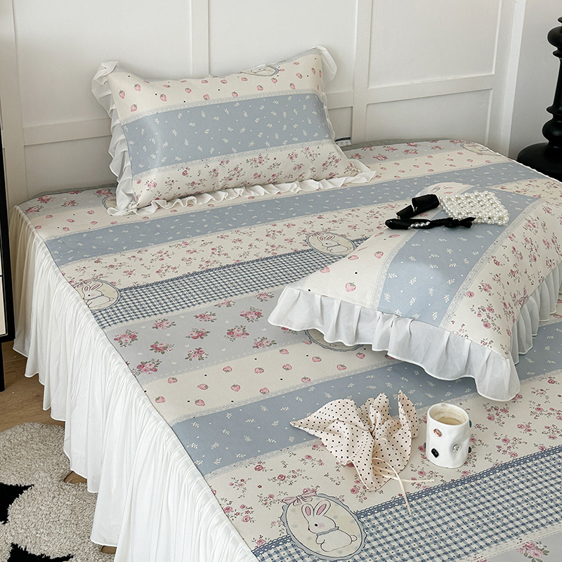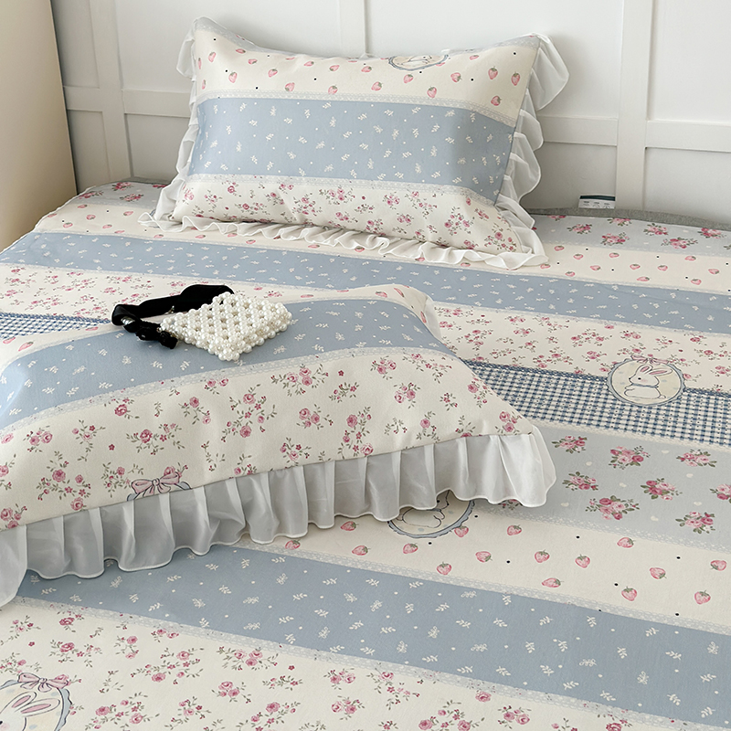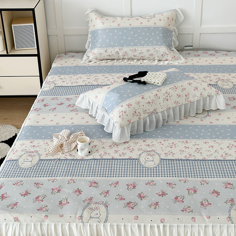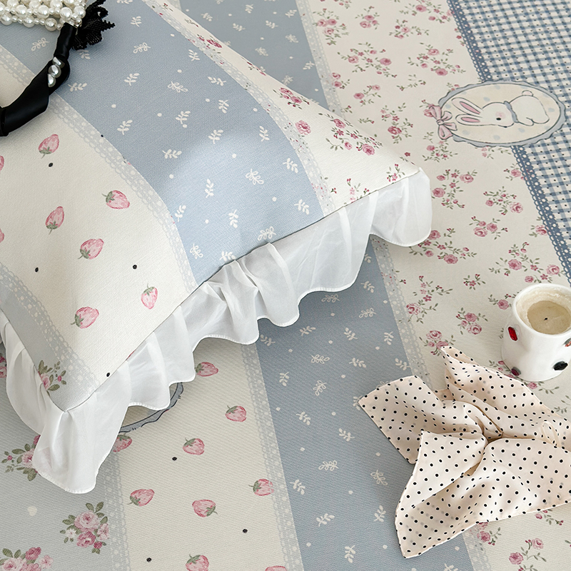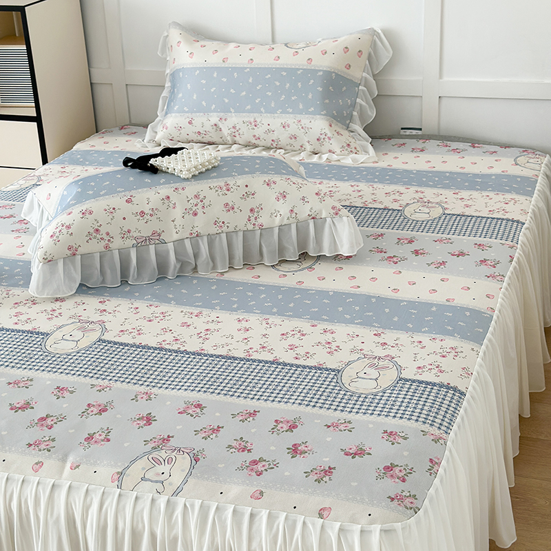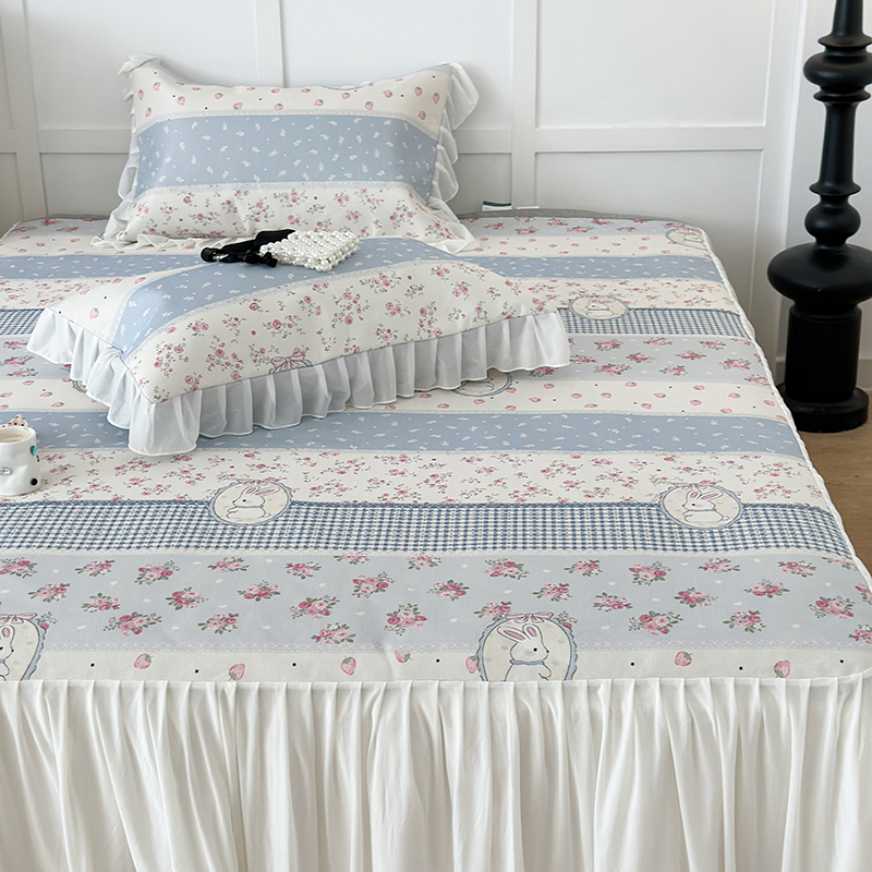 昔可家纺 2024新款A类900D仙仙雪纺床裙冰丝席 蕾丝草莓兔