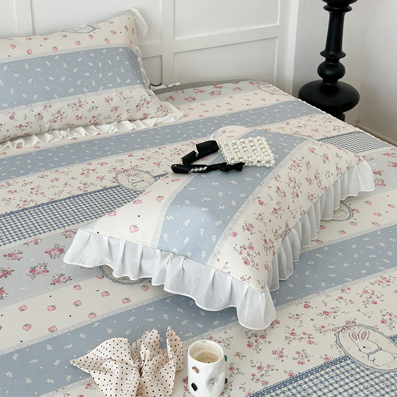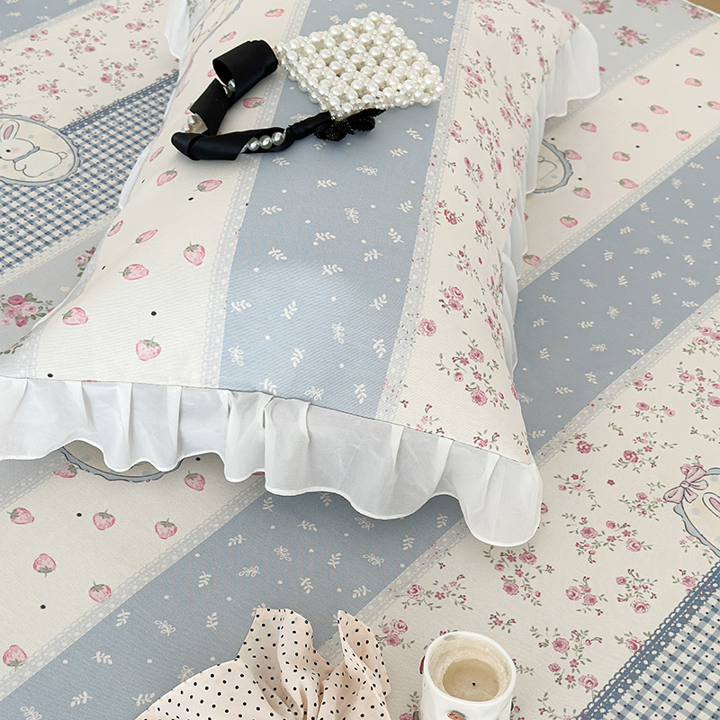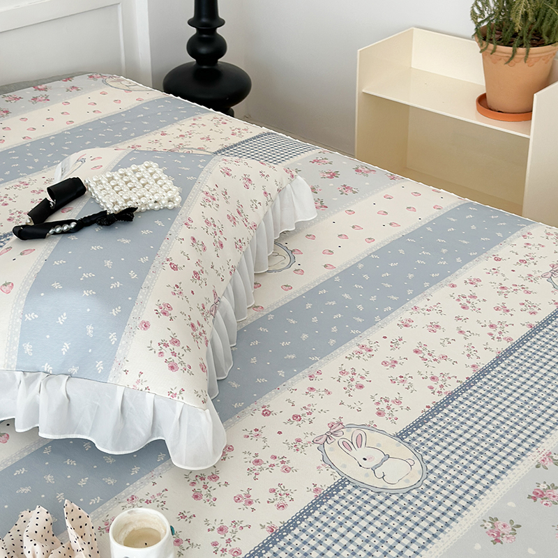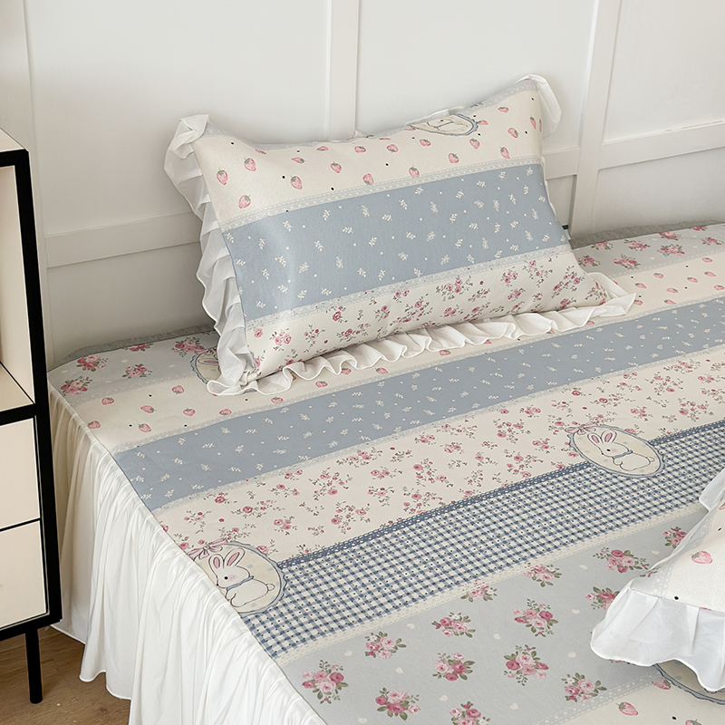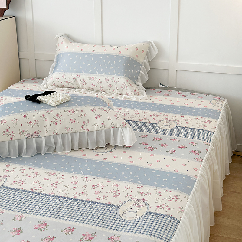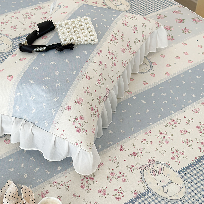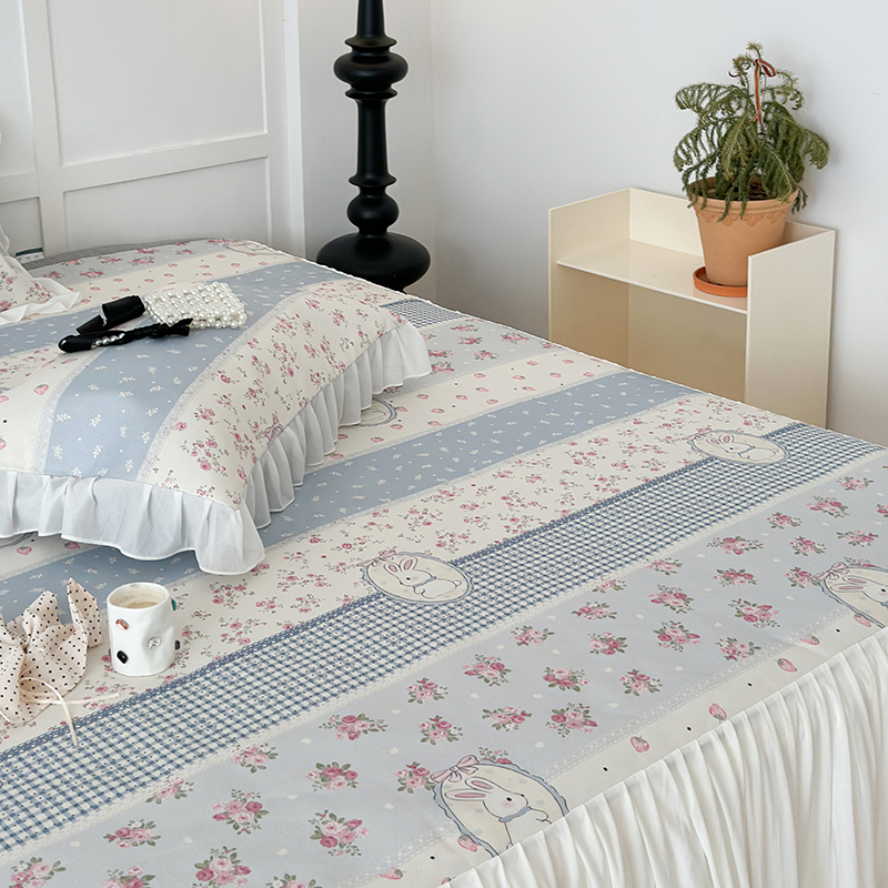 商品名称:昔可家纺 2024新款A类900D仙仙雪纺床裙冰丝席 蕾丝草莓兔