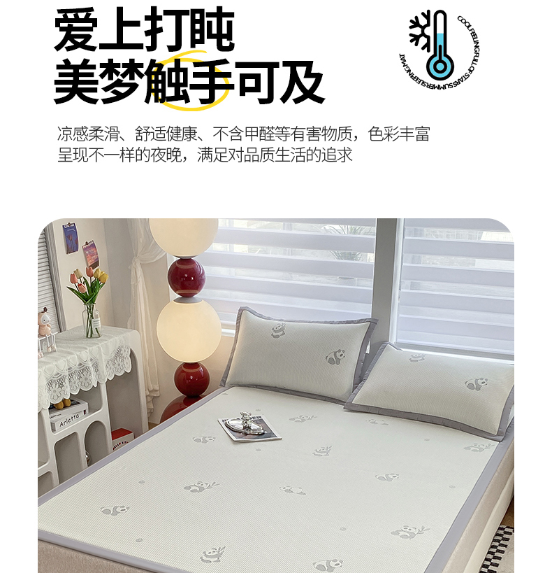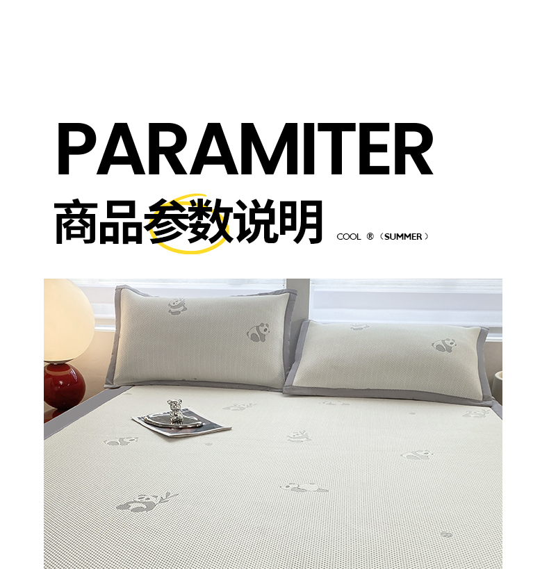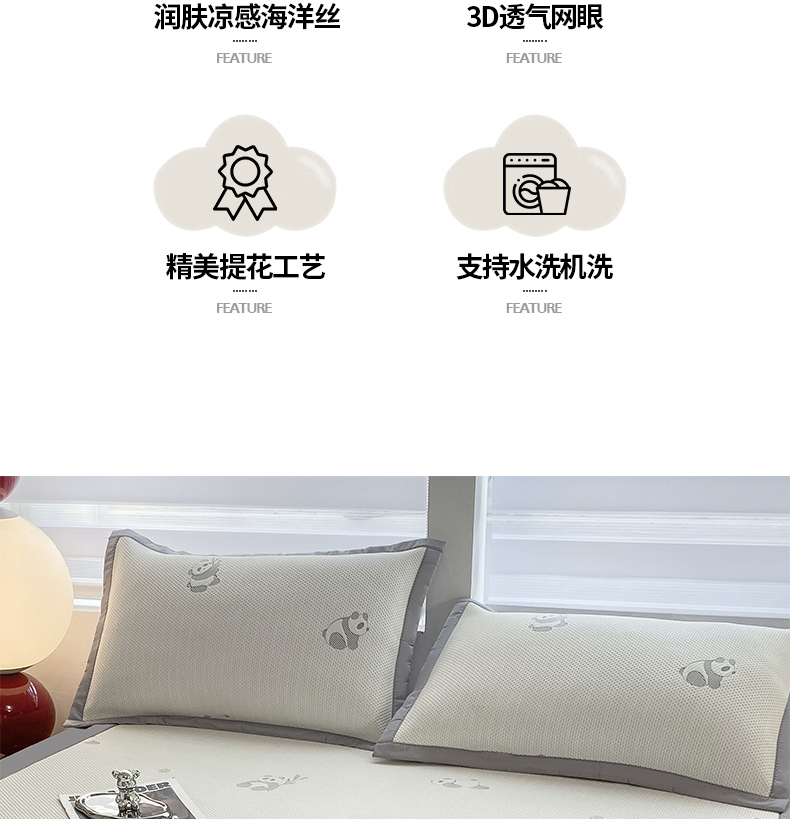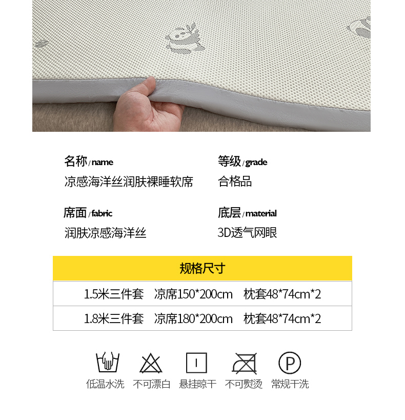 商品名称:典冠 2024新款A类乙伦凉感PE凉席海洋丝裸睡软席三件套 熊猫灰