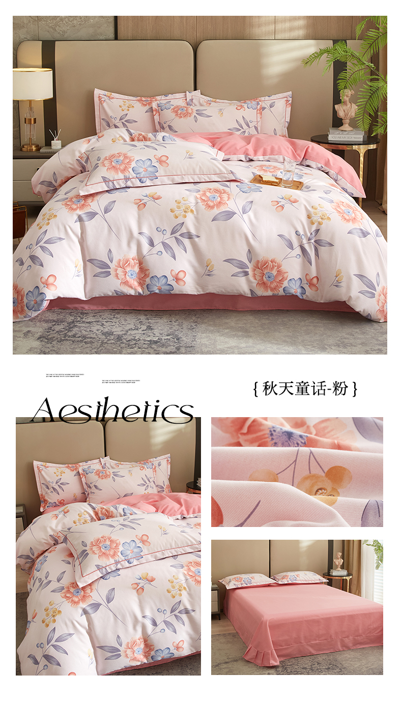 金纱玉纺家纺 2024新款加厚AB版四件套秋天童话-粉