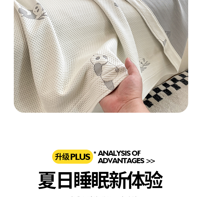 (总)典冠 2024新款A类凉感华夫格竹纤维冷感毯毛巾被,中灰,兔仔白,卡其,咖兔子,天兰,奶白,彩色煤球蓝,彼得兔庄园,恐龙乐园黄,时尚字母灰,波波小熊灰,淡紫,花团锦簇,蝴蝶结