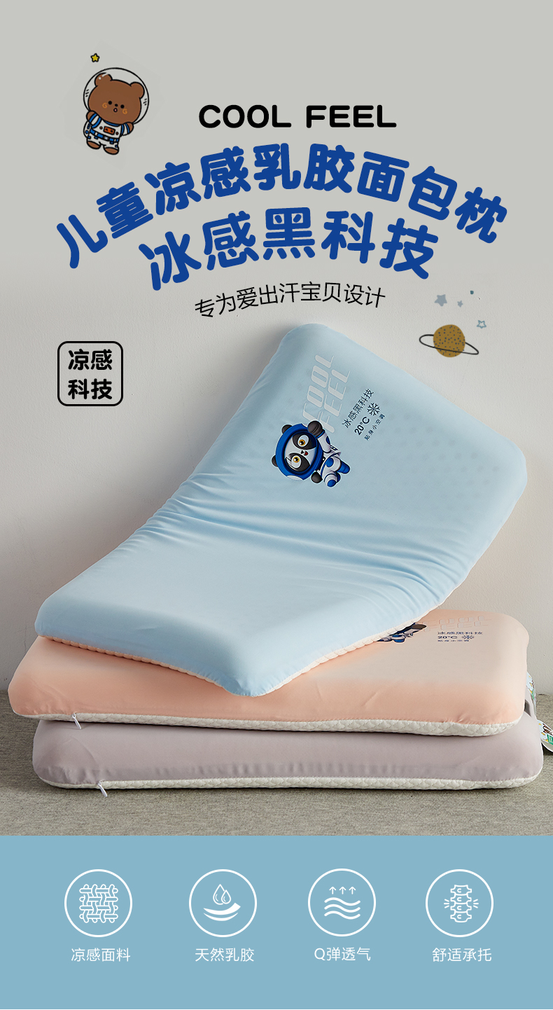 (总)沃兰国际 2024新款儿童凉感乳胶面包枕枕头枕芯