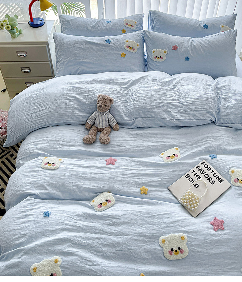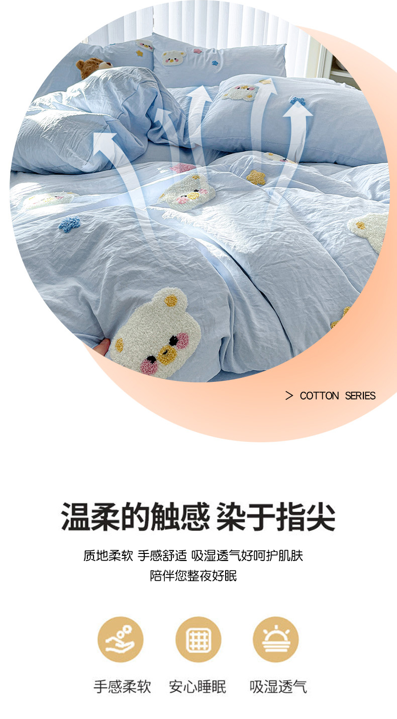 商品名称:韩巢家纺 2024新款超柔水洗棉毛巾绣单件被套-幸运熊系列(提供精美卖家秀 ) 幸运熊浅蓝