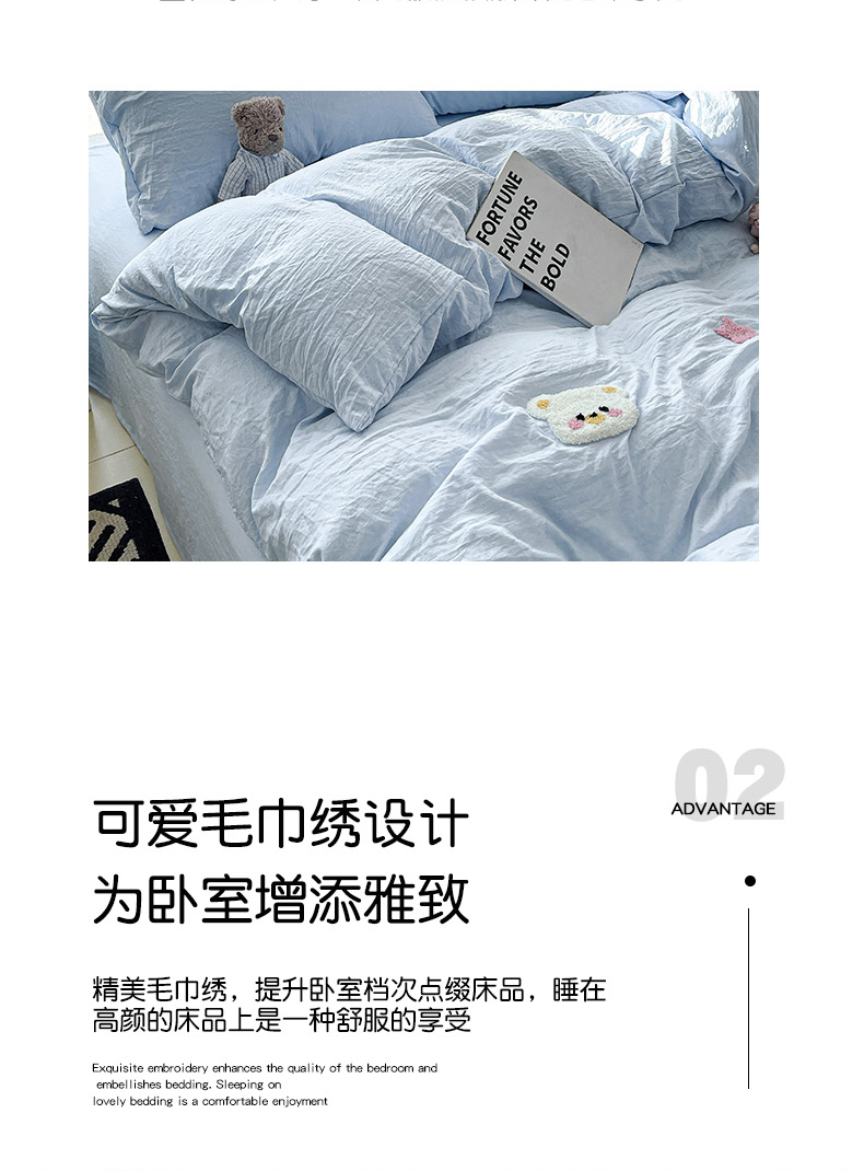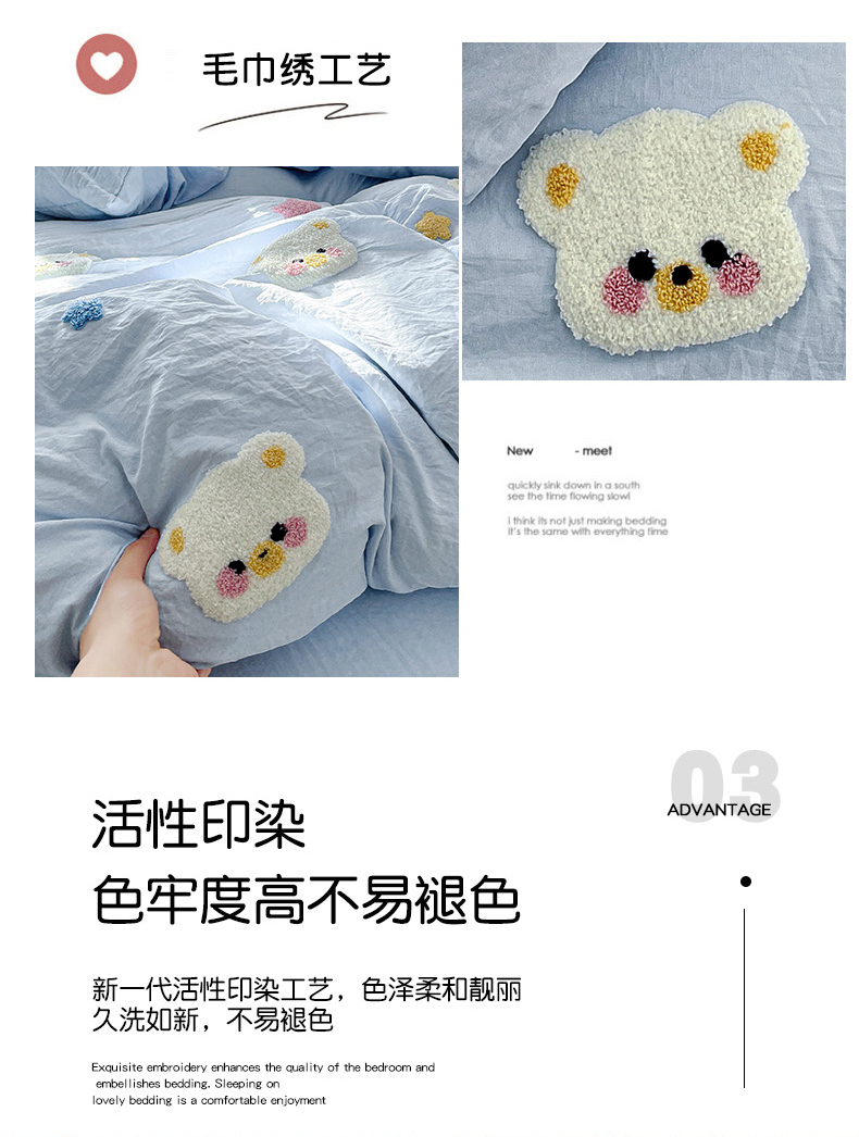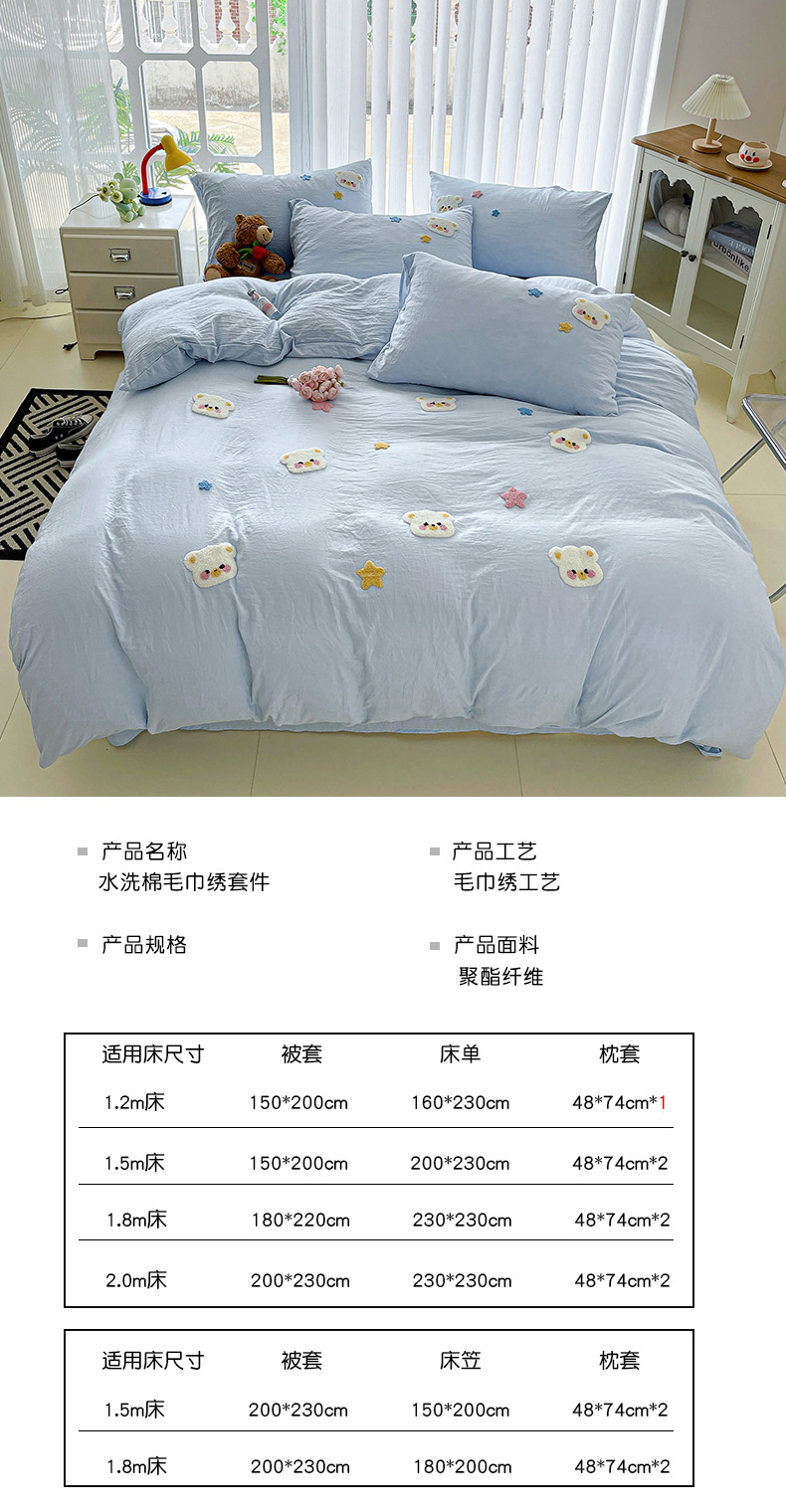 韩巢家纺 2024新款超柔水洗棉毛巾绣单件被套-幸运熊系列(提供精美卖家秀 ) 幸运熊浅蓝