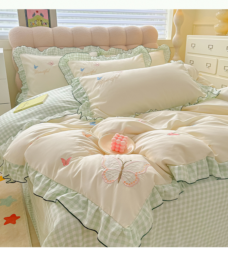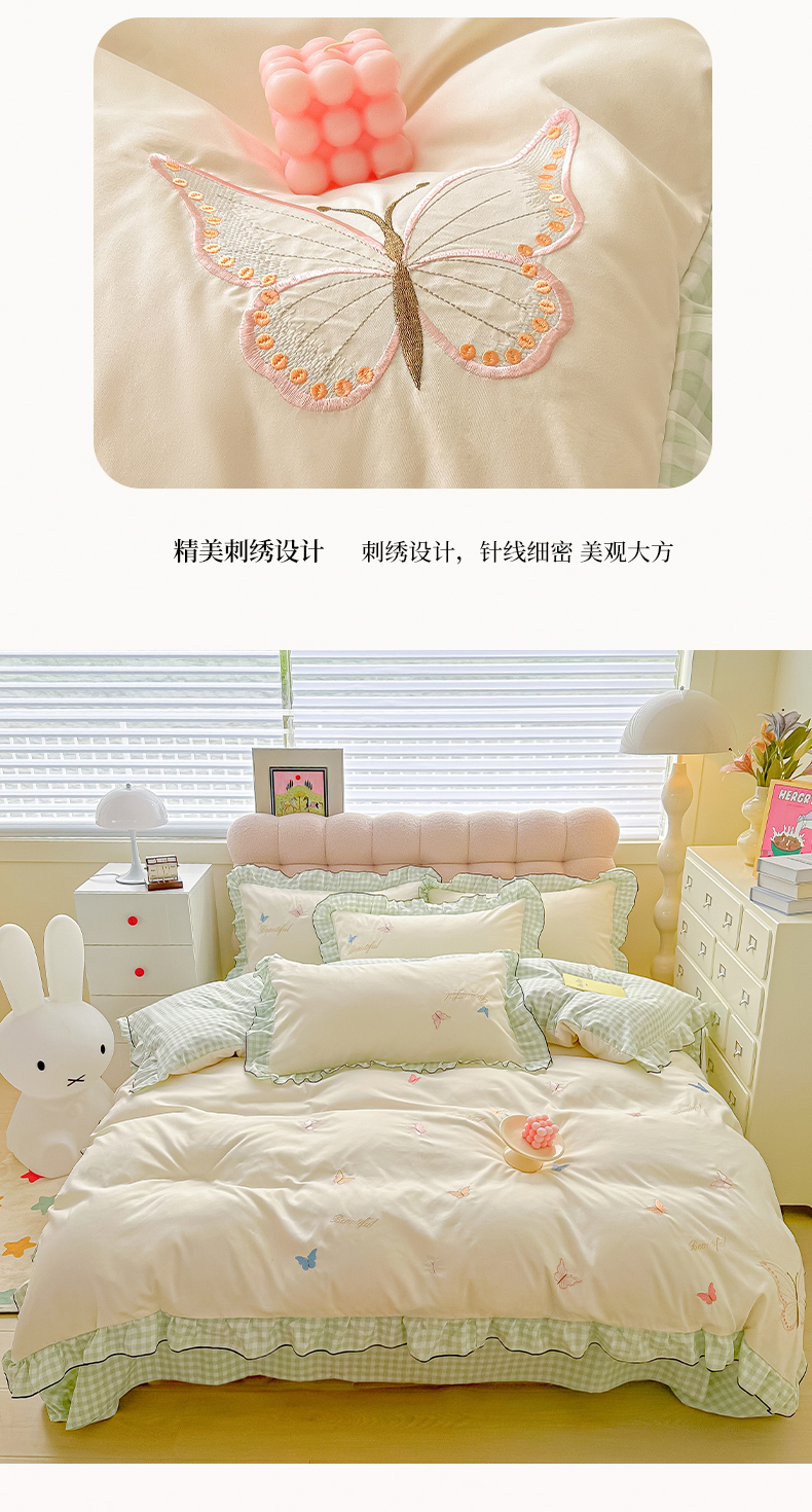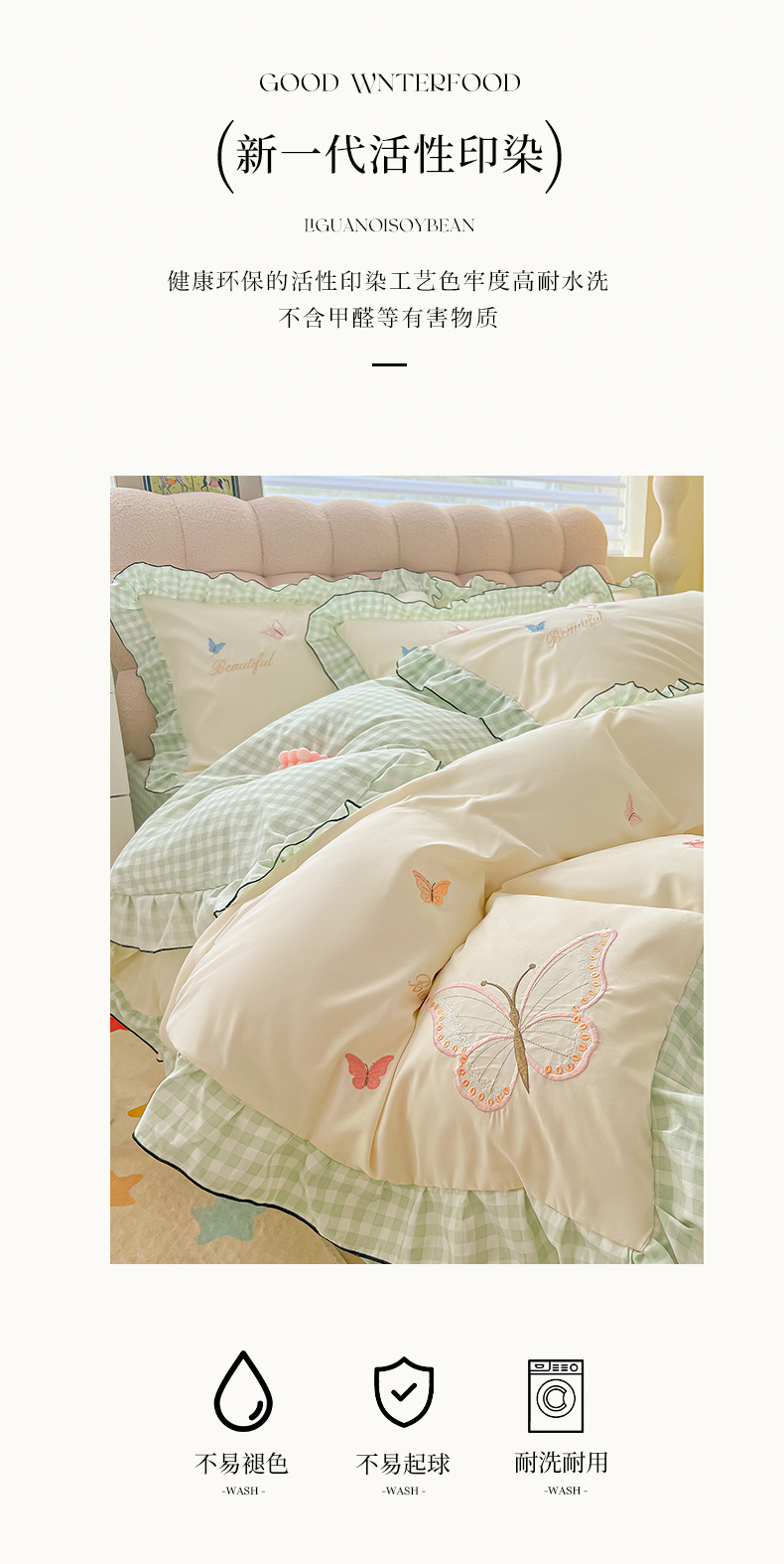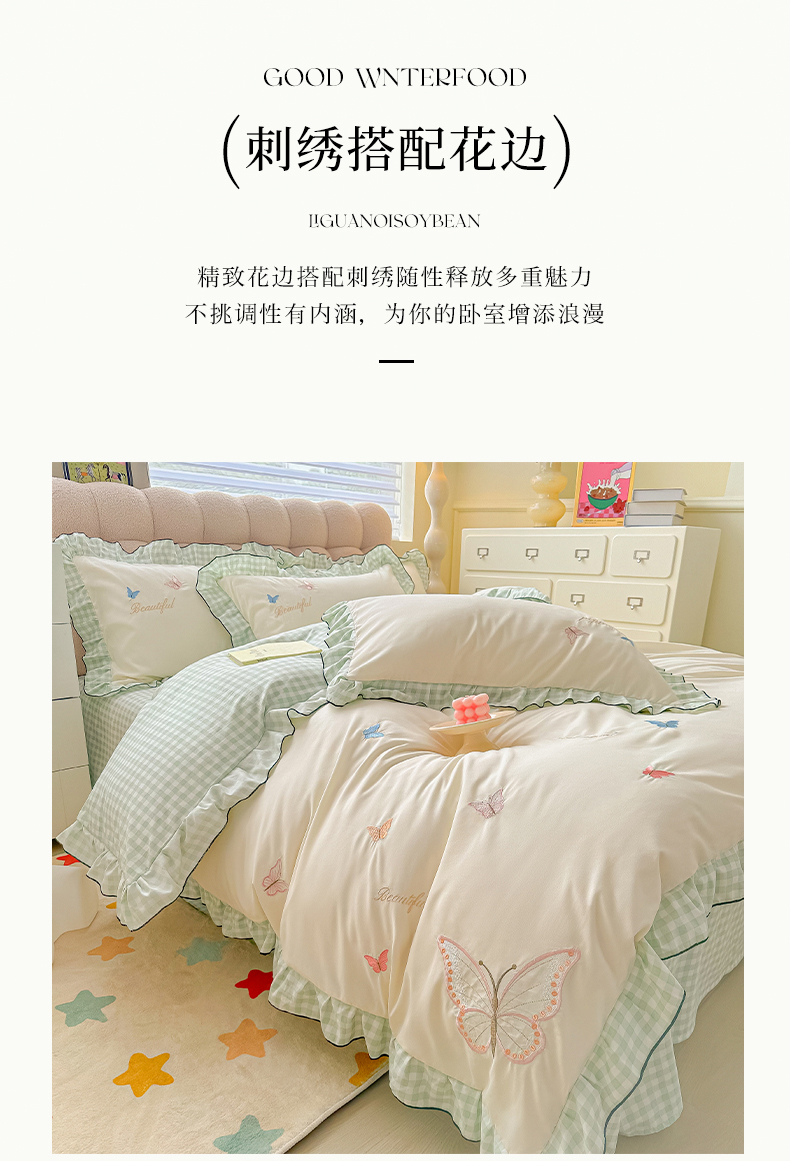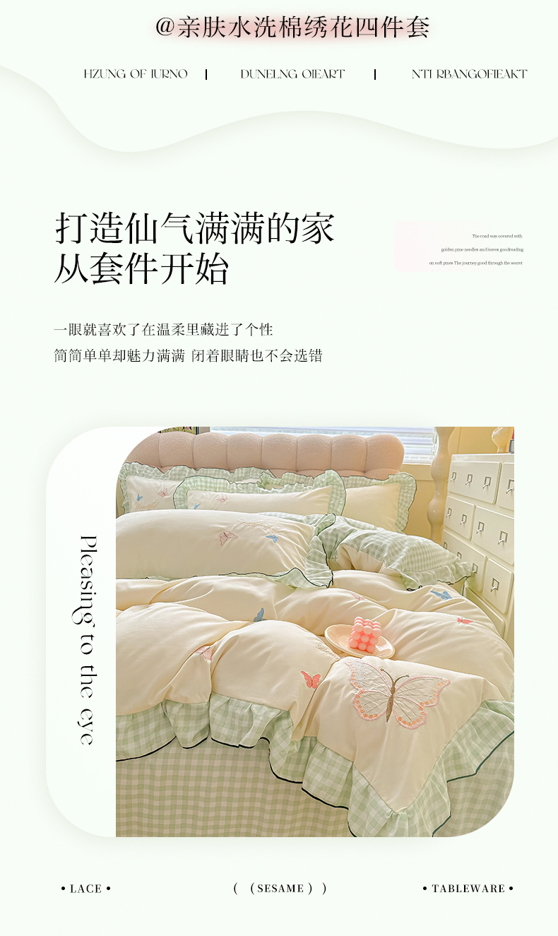 商品名称:韩都家居 2024新款ins韩系水洗云朵棉刺绣四件套【蝶影仙踪】 蝶影仙踪-绿