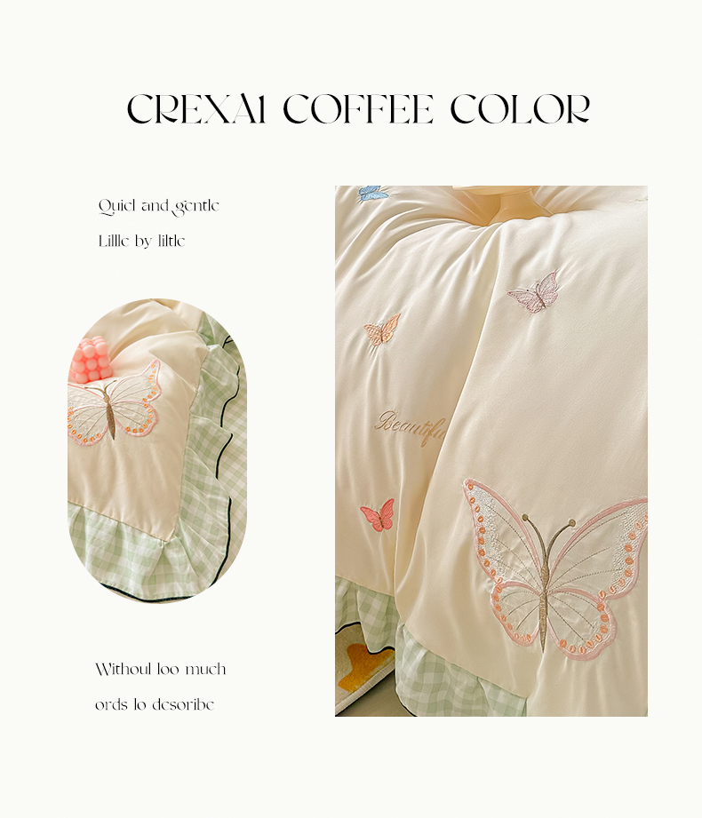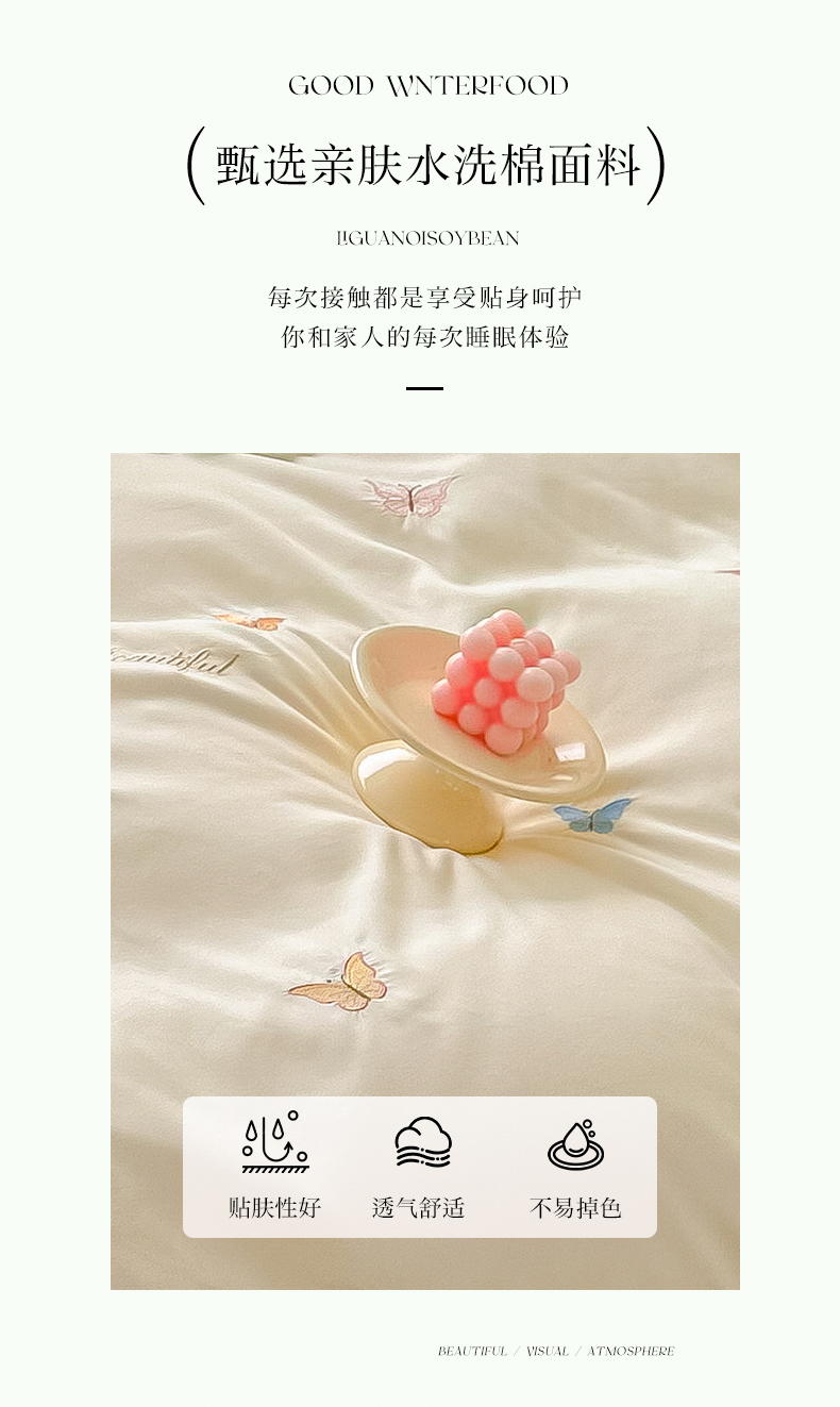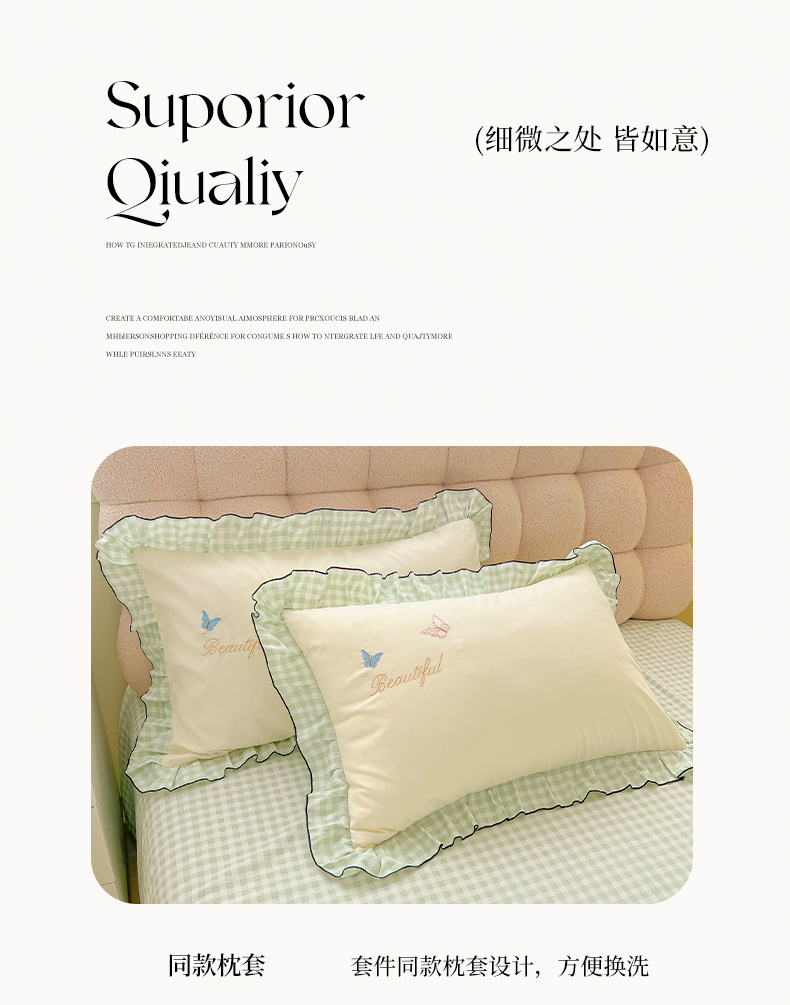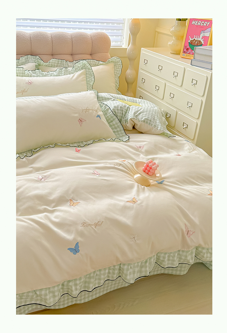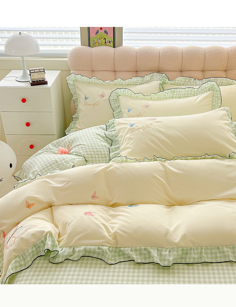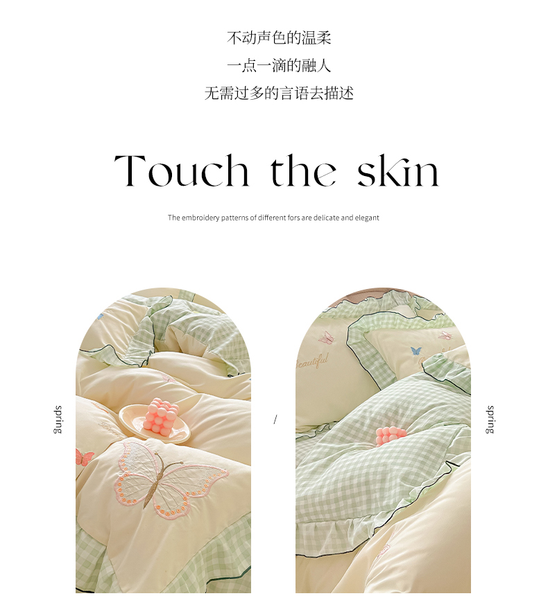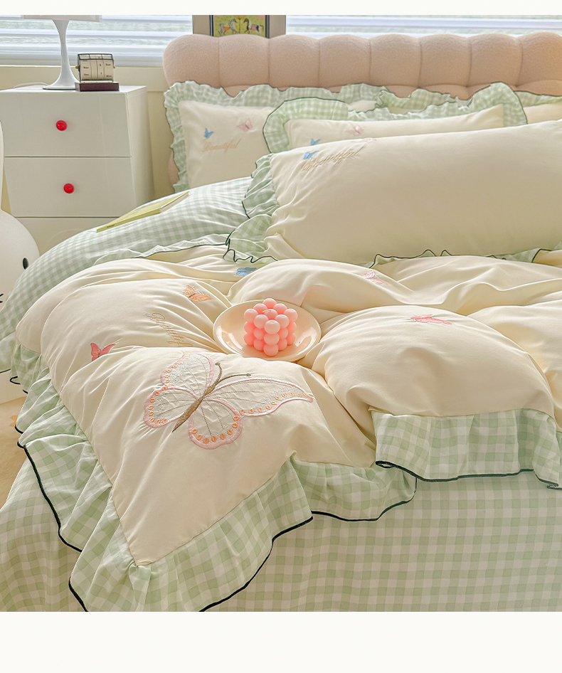 商品名称:韩都家居 2024新款ins韩系水洗云朵棉刺绣四件套【蝶影仙踪】 蝶影仙踪-绿