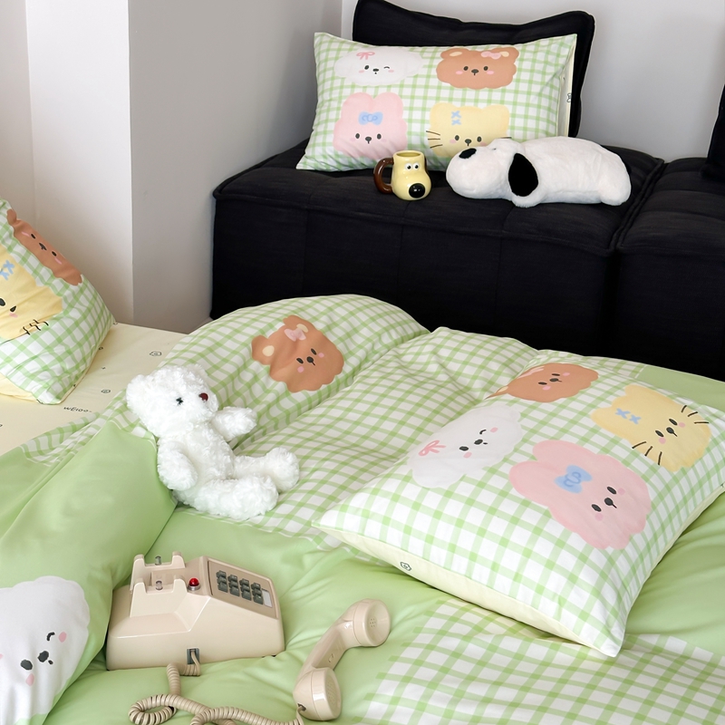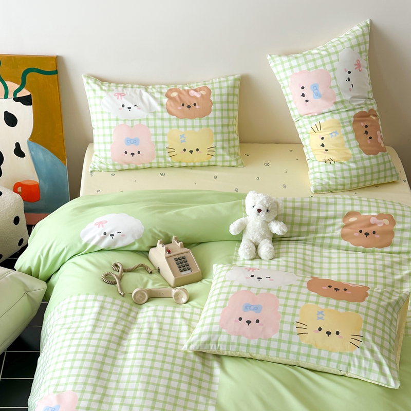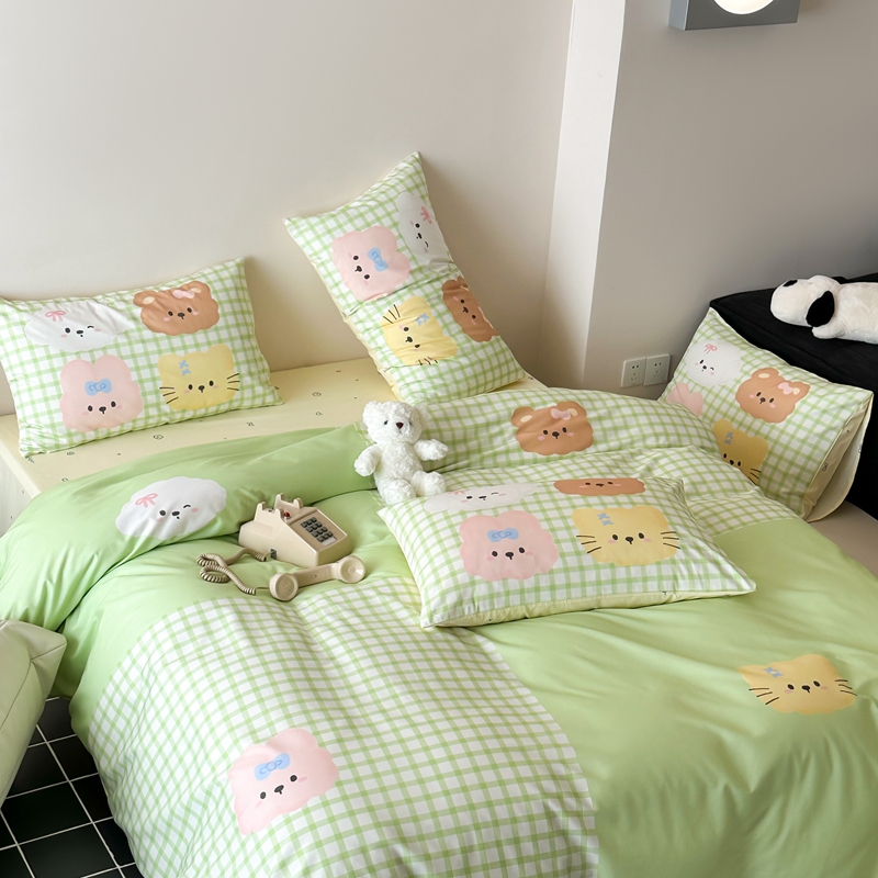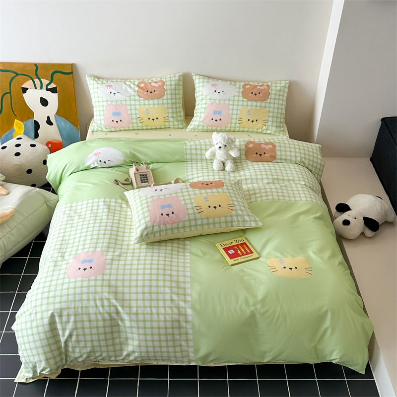 商品名称:桃喜 2024新款全棉大版卡通混搭四件套 绿格动物园