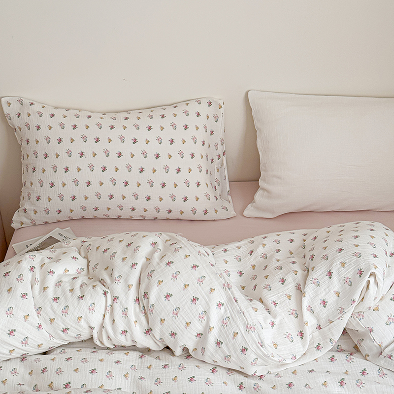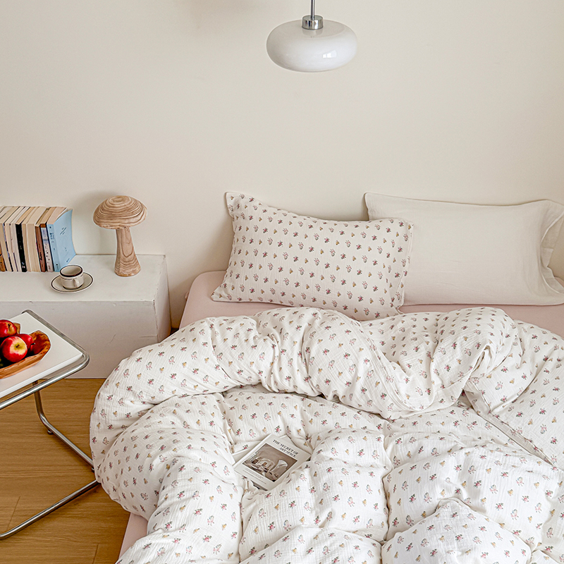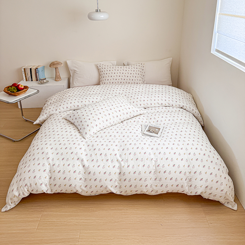 商品名称:2024新品专版印花双层皱皱纱四件套 半夏