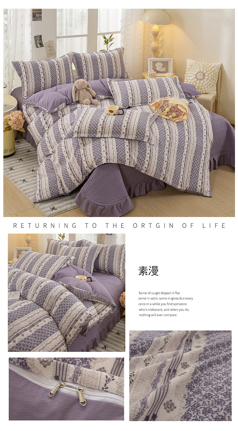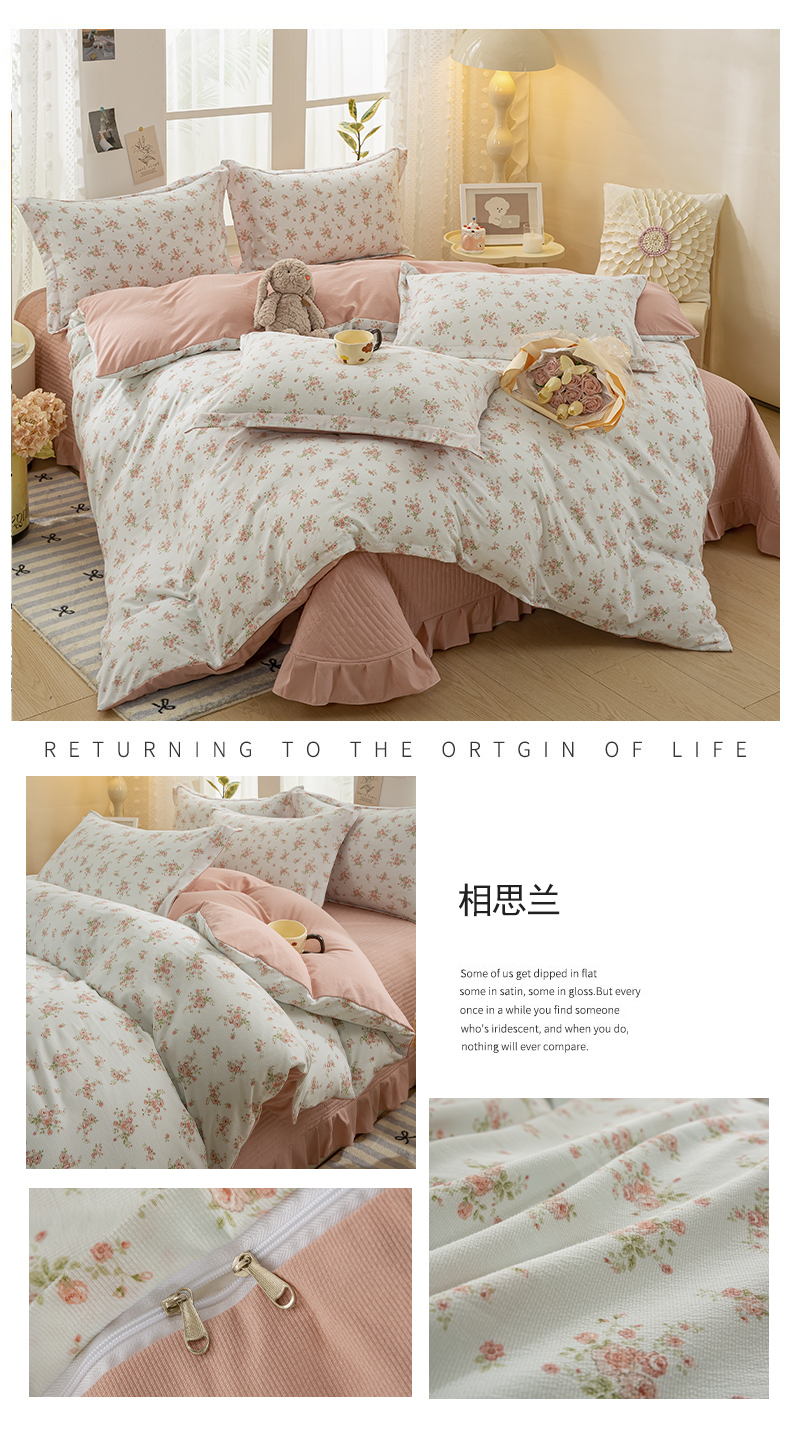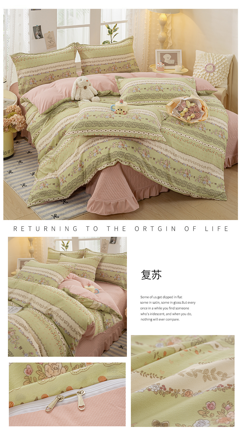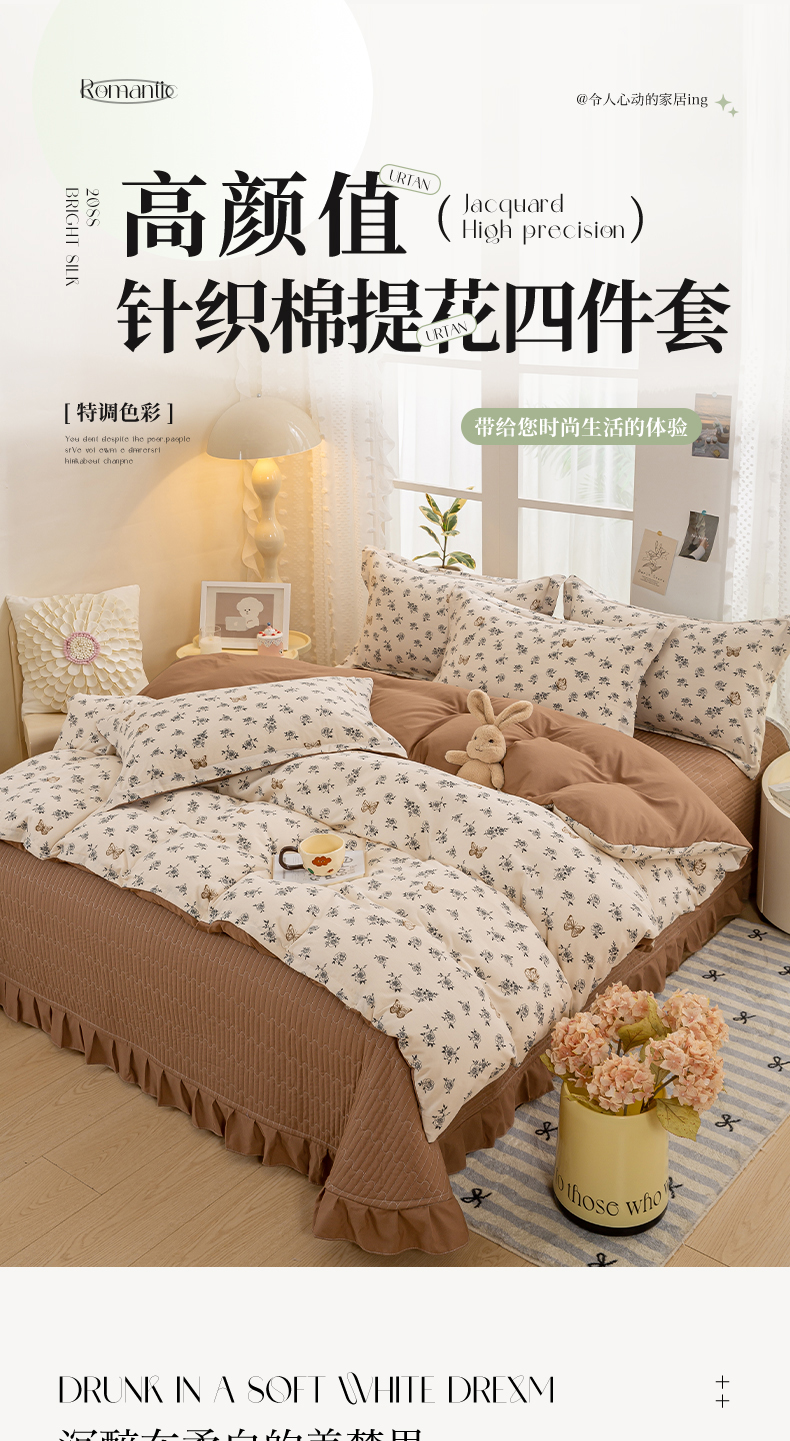 商品名称:(总)富之航家纺 2024爆款公主风床盖四件套新款小清新提花针织棉床盖四件套