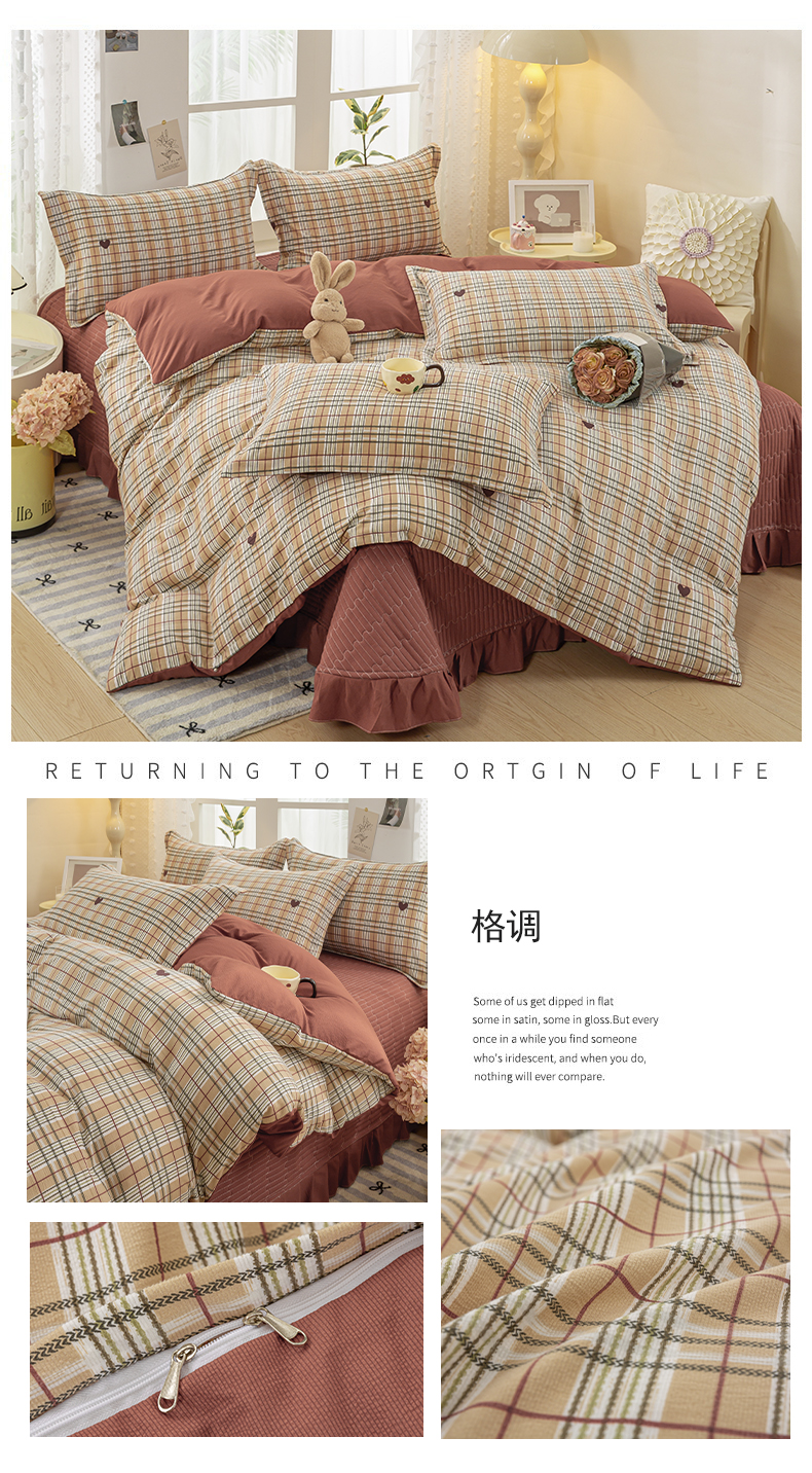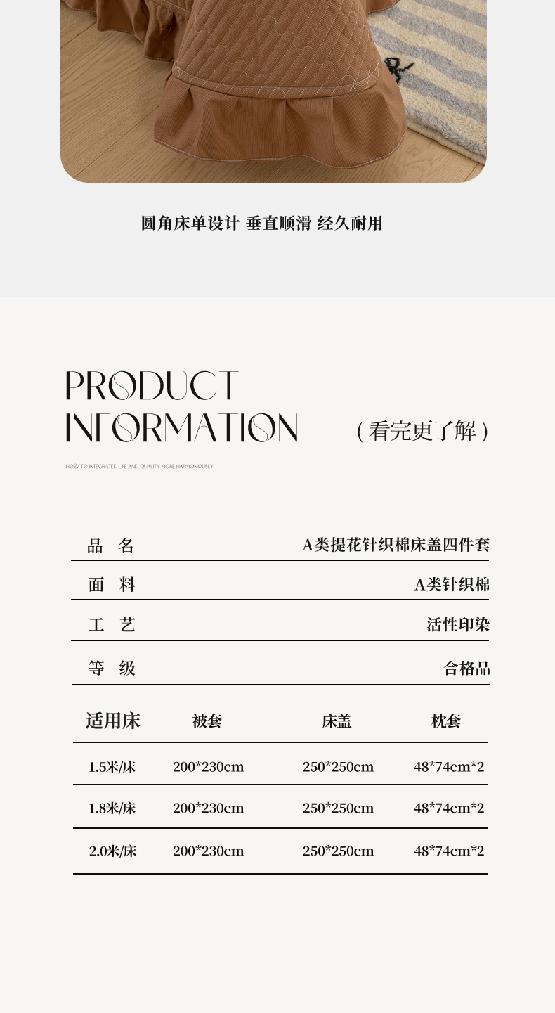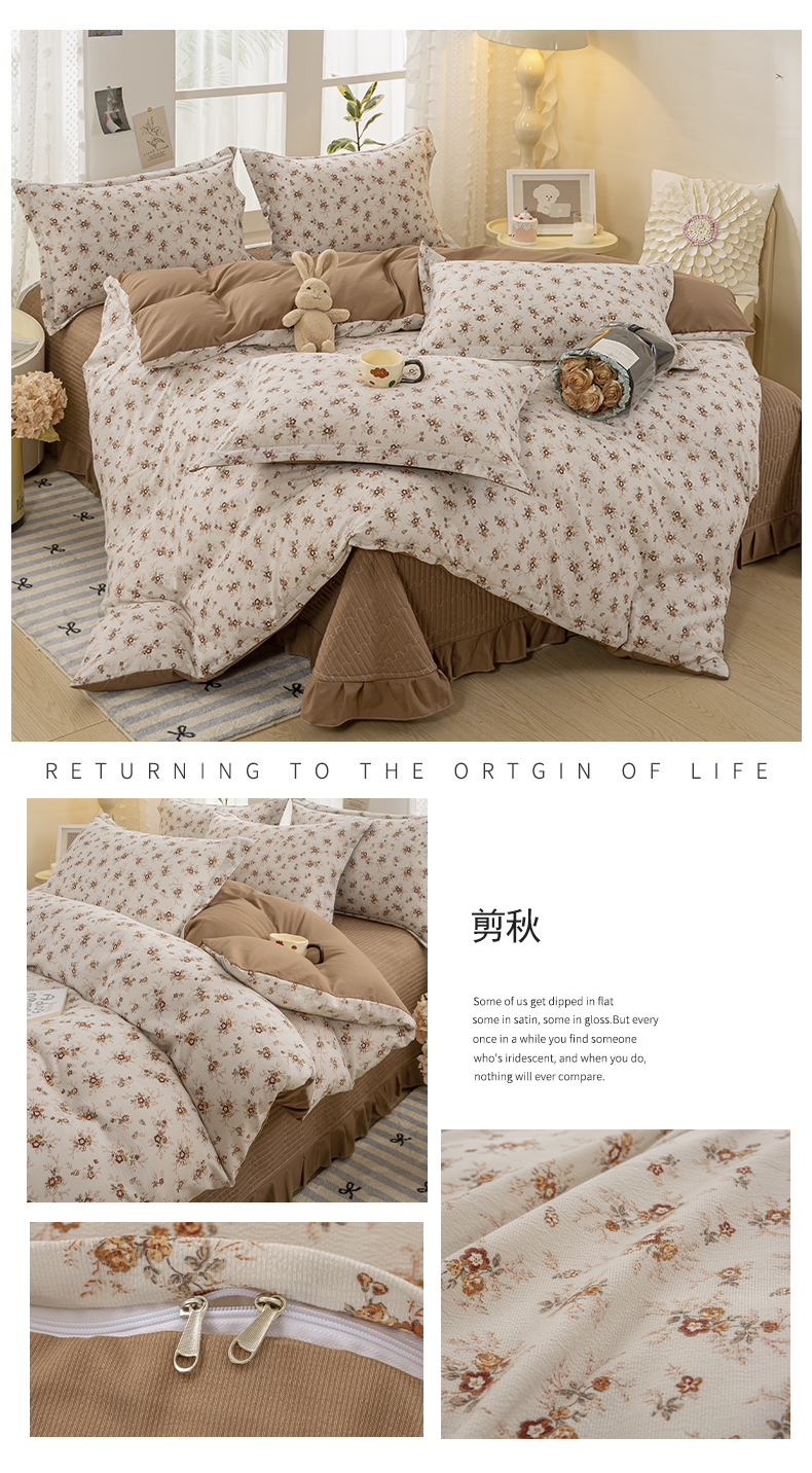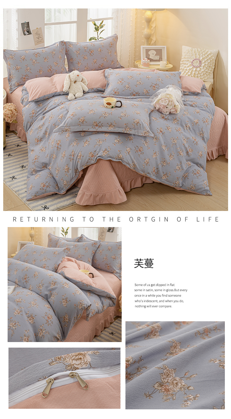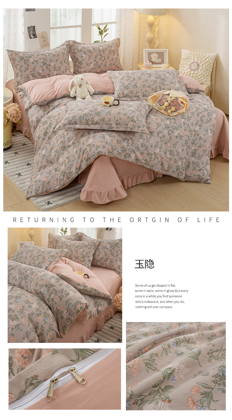 商品名称:(总)富之航家纺 2024爆款公主风床盖四件套新款小清新提花针织棉床盖四件套