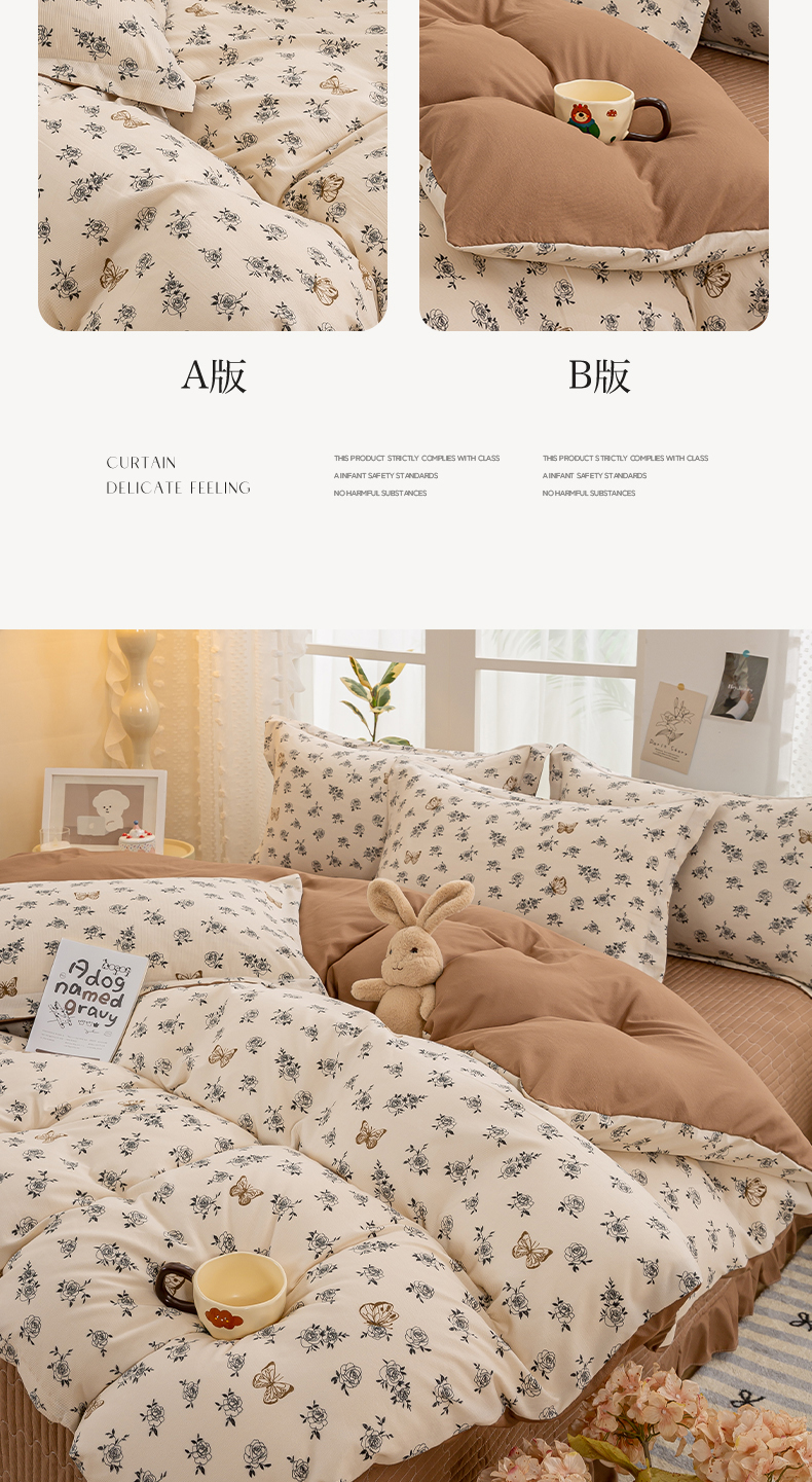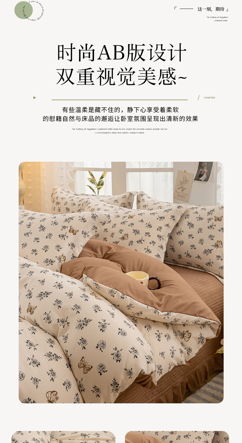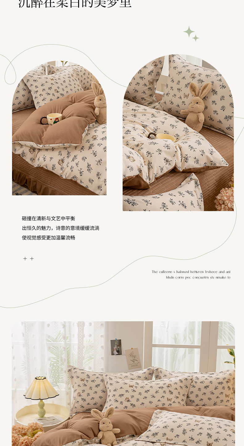(总)富之航家纺 2025新款小香风赫本风ins风大牌韩版大花边轻奢牛奶绒四件套,蝶恋花,蝶栖,黑糖,楼桃,眠语,慕秋,叶叙,游园-白,游园-绿,紫萝