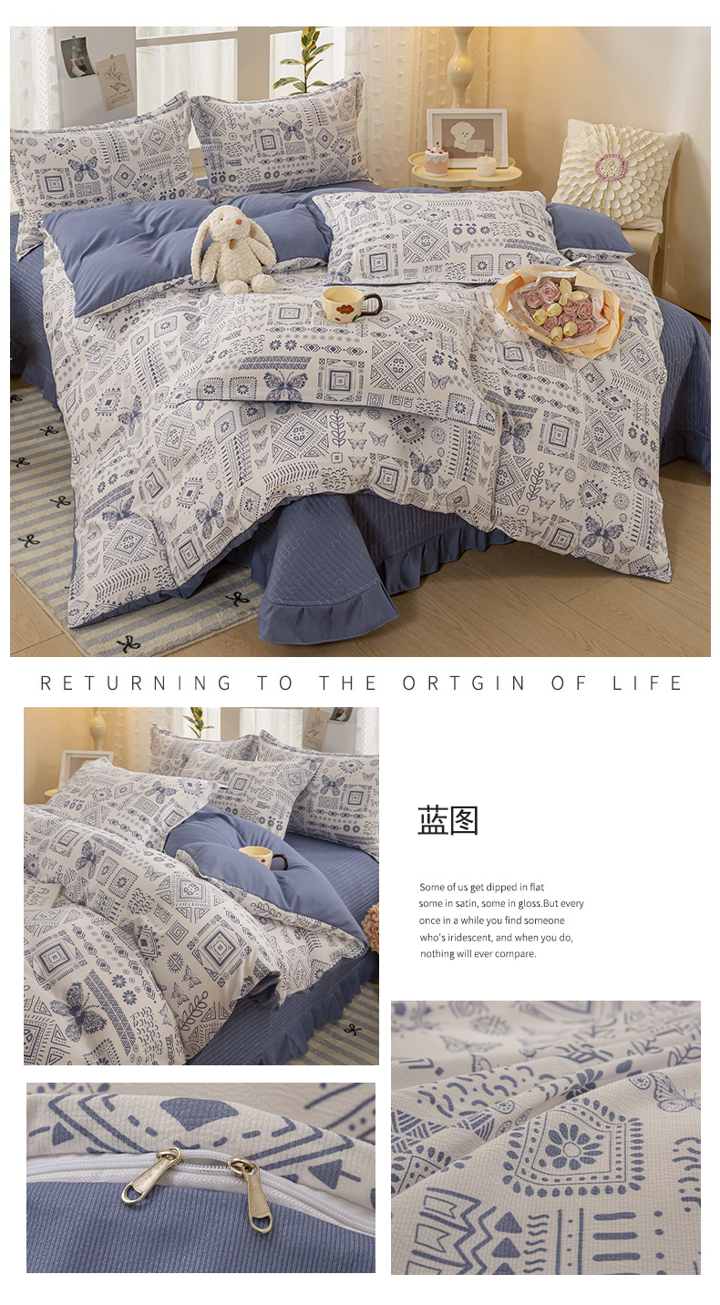 (总)富之航家纺 2024爆款公主风床盖四件套新款小清新提花针织棉床盖四件套