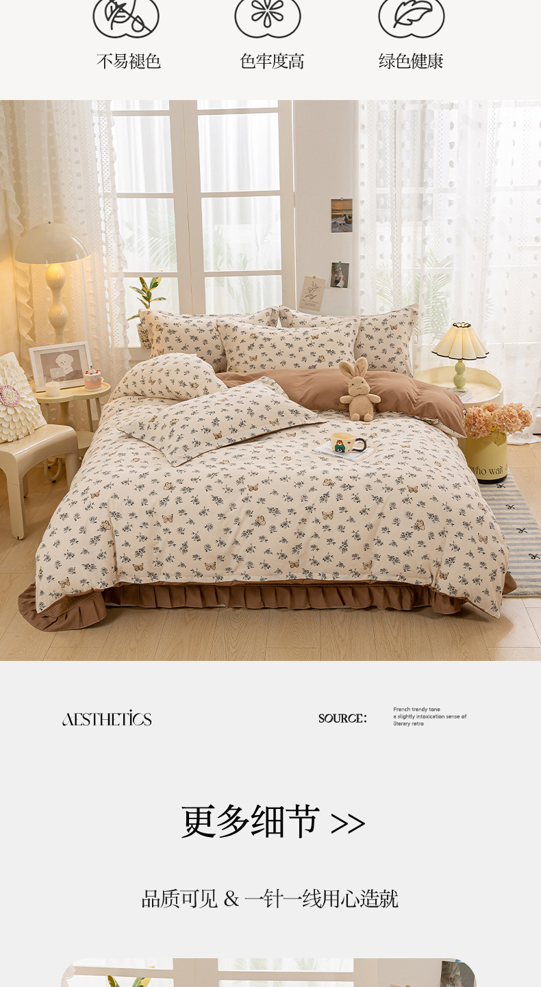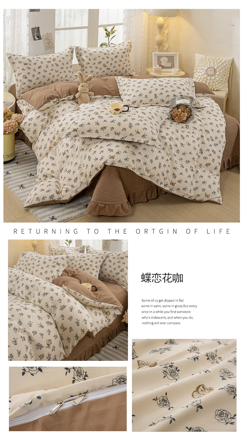 (总)富之航家纺 2024爆款公主风床盖四件套新款小清新提花针织棉床盖四件套,蝶恋花咖,比心,饼干熊,芙蔓,复苏,格调,剪秋,蓝图,梦蝶,蜜桃,莫吉,清欢,素漫,雾里花,相思兰,玉隐