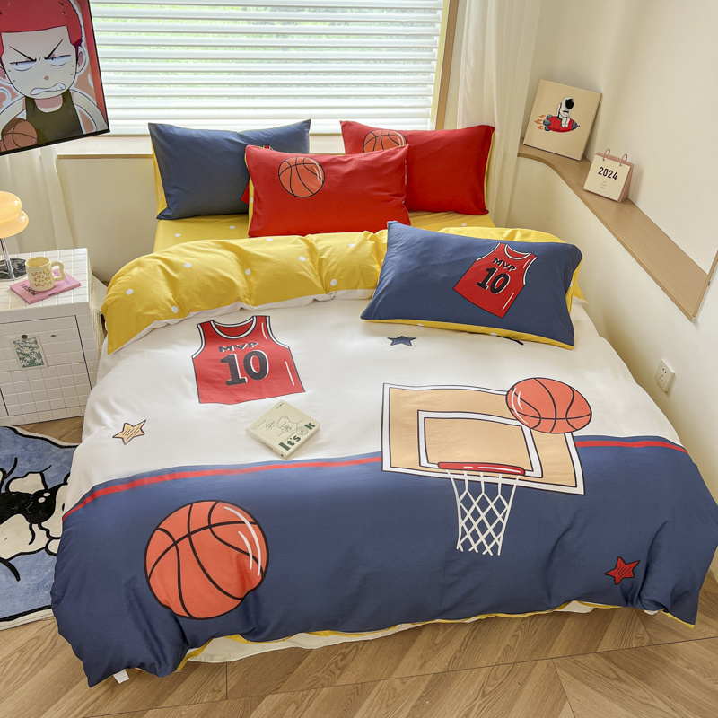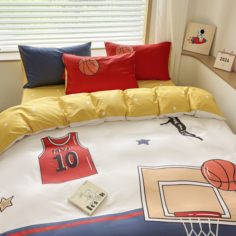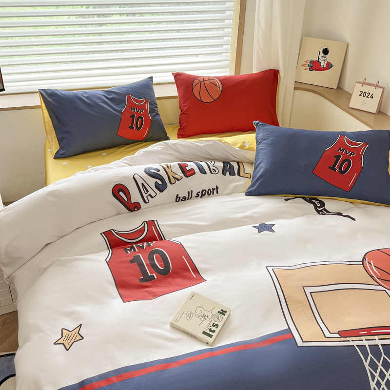 当前位置: 91家纺网 > 商品网购 > 床品套件 > 四件套 > 全棉普通四件套 > 孩子王 2025新款亲肤活性大版纯棉专版太空人卡通学生儿童宿舍四件套系列 灌篮少年